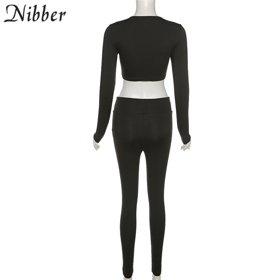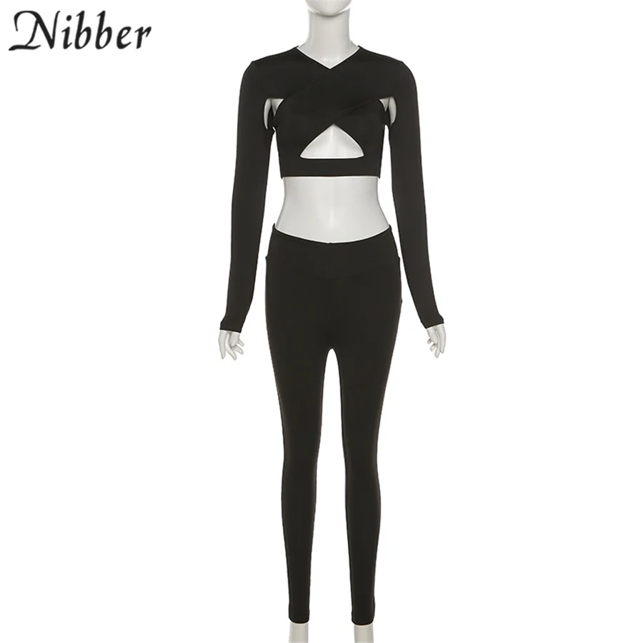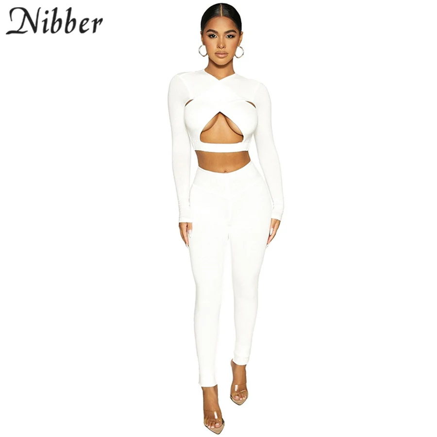 Комплект из двух предметов Nibber Женский, модный однотонный пикантный бандажный кроп-топ с перекрестным воротником и брюки-карандаш, с вырезами, оптовая продажа