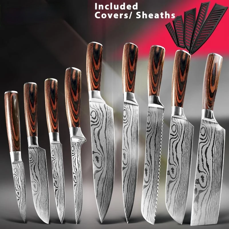 Набор кухонных ножей 7CR17 440C, из нержавеющей стали, 9 предметов