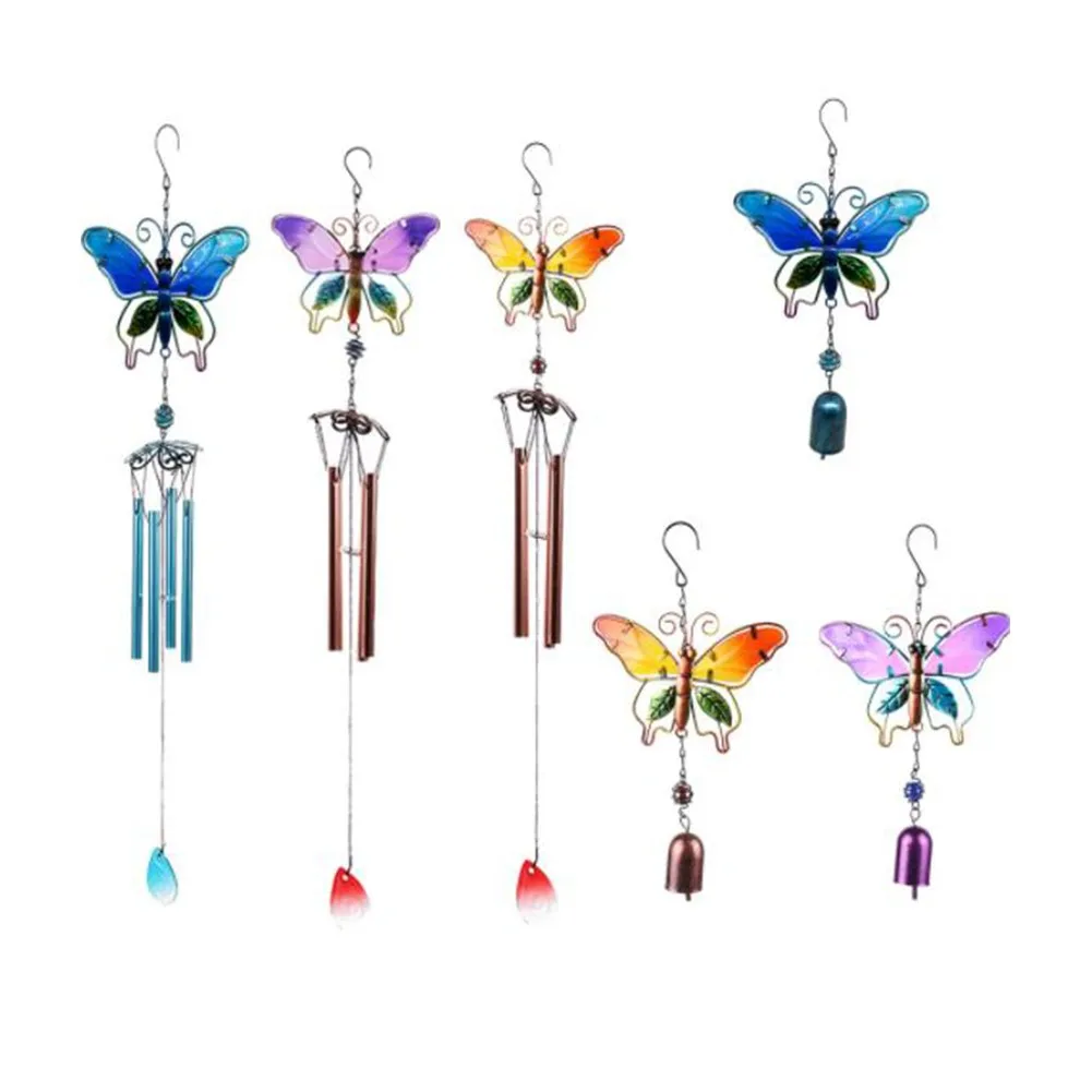 Хрустальные ветряные колокольчики в форме бабочки с Металлическими трубками для фотодвора, подвесное украшение, креативный подарок