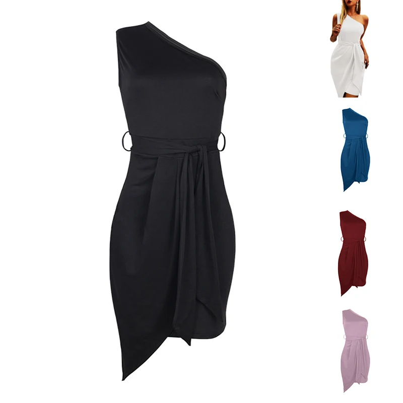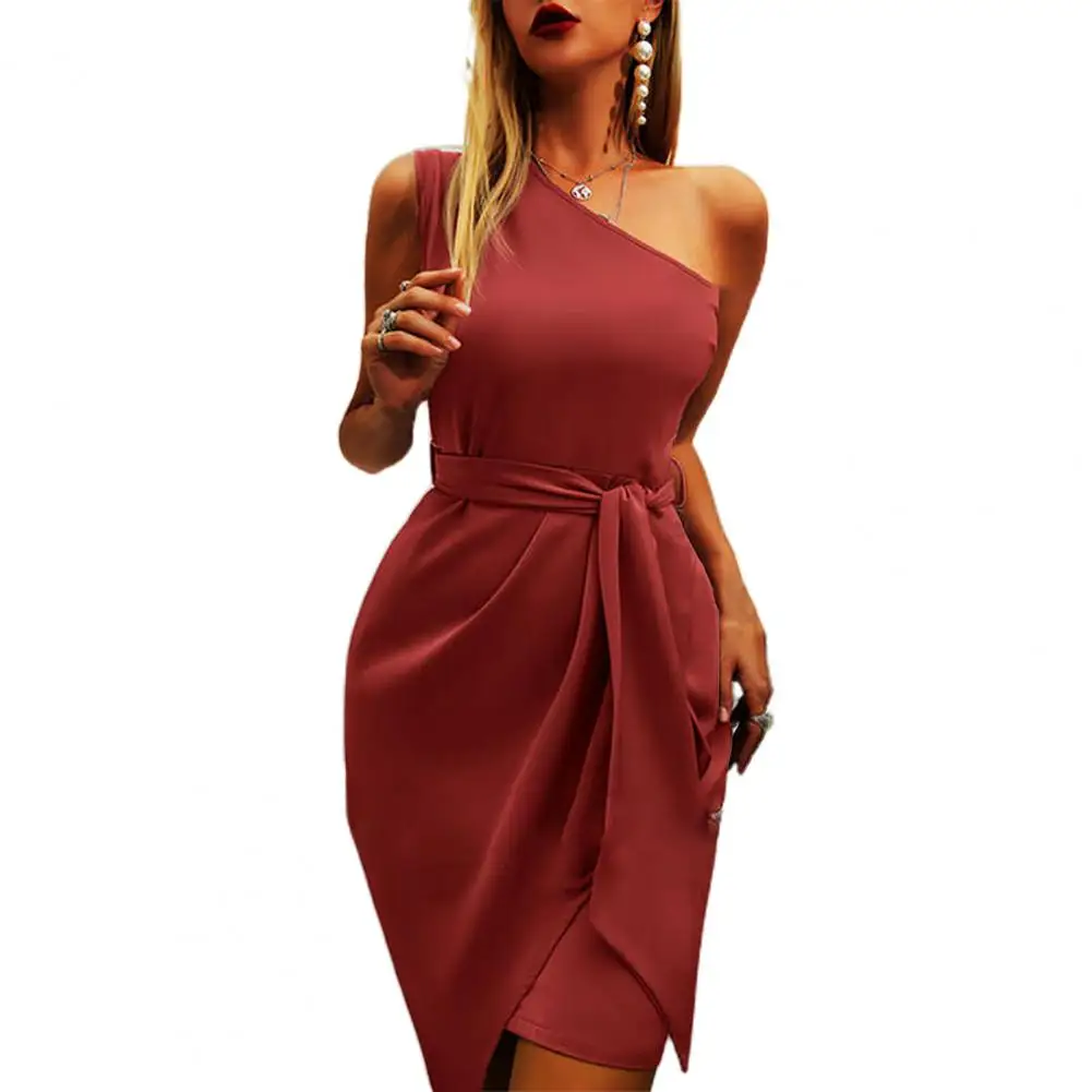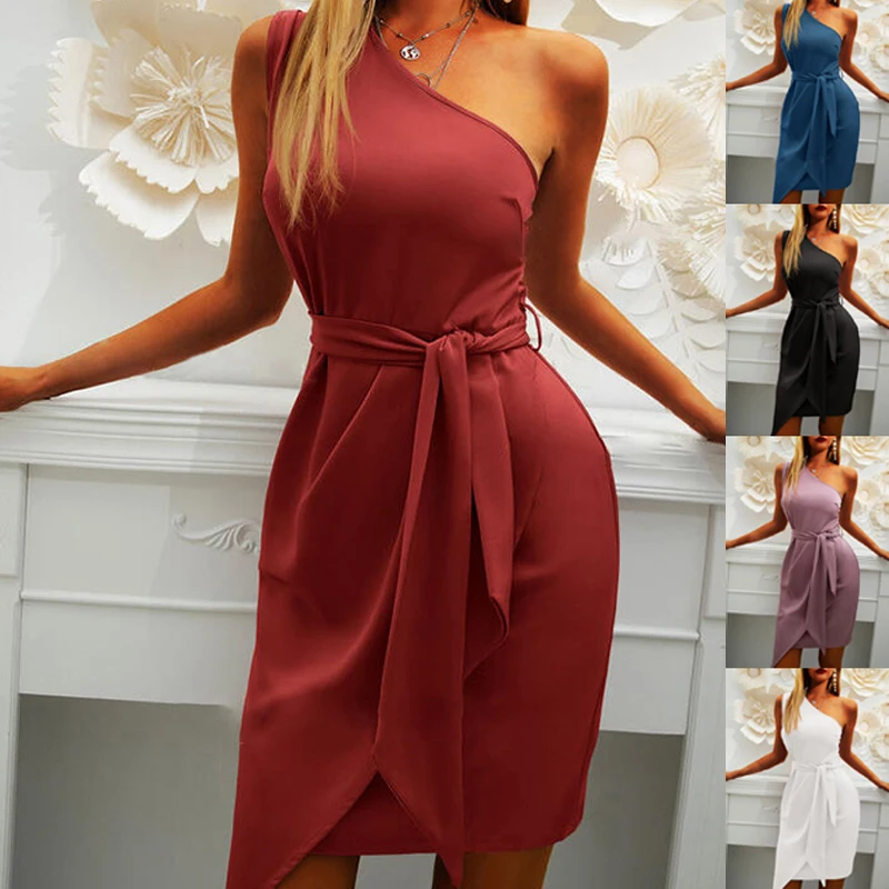 Женское сексуальное платье на одно плечо с открытой спиной, модное летнее тонкое платье со шнуровкой и поясом, вечерние платья, повседневные однотонные Асимметричные мини-платья S-2XL