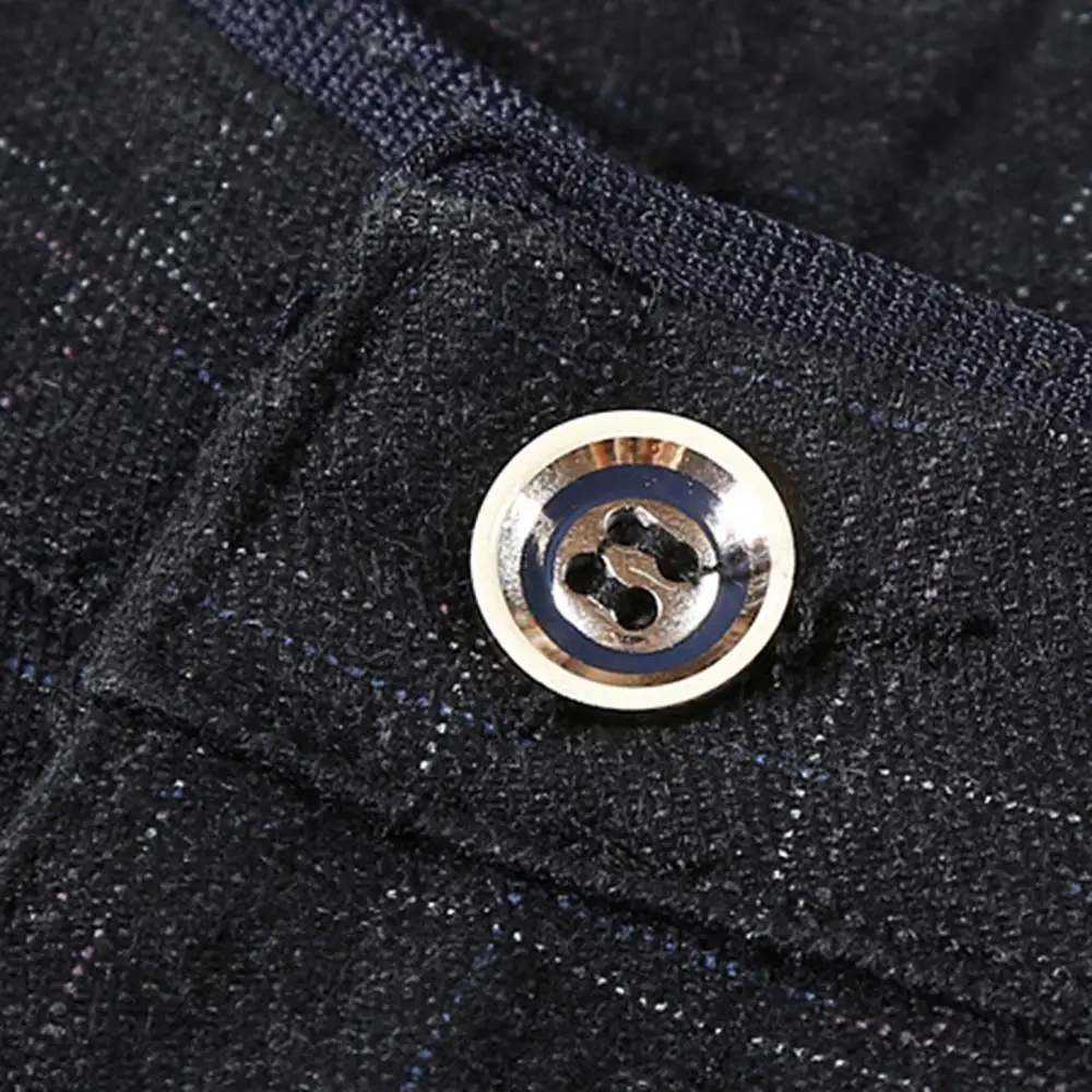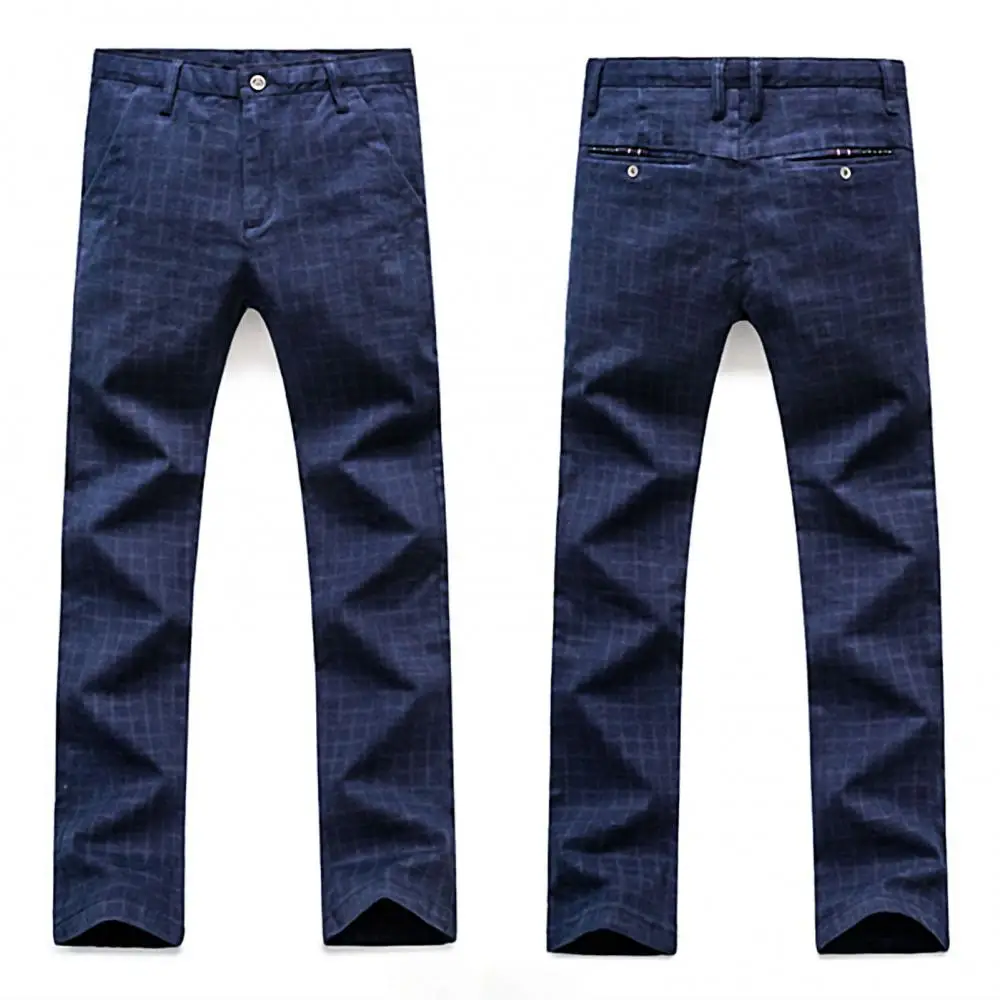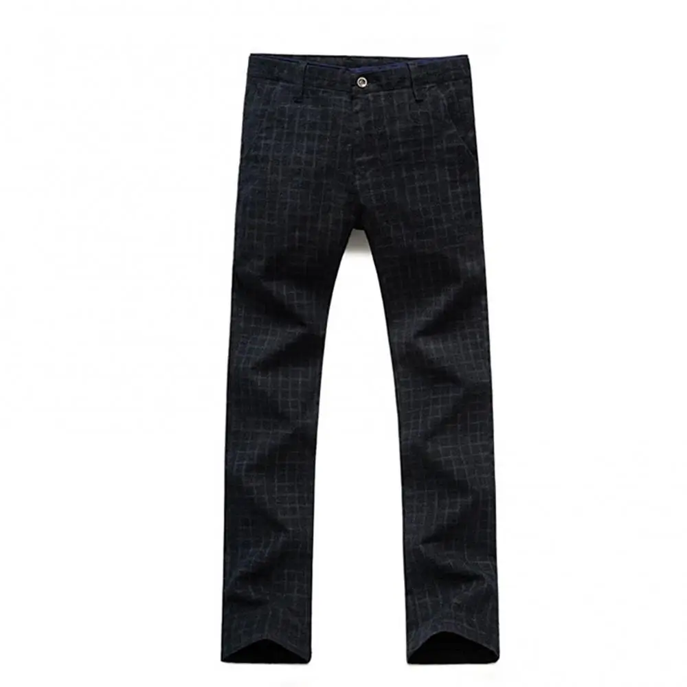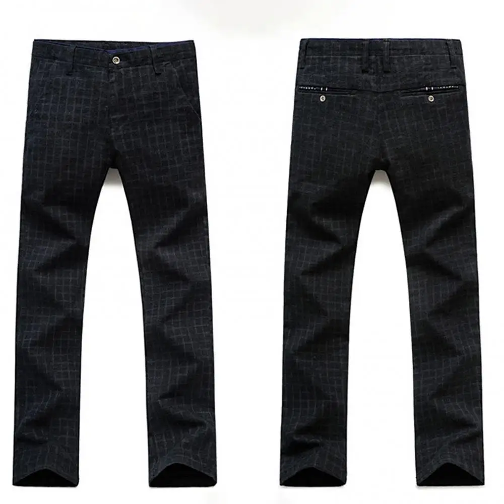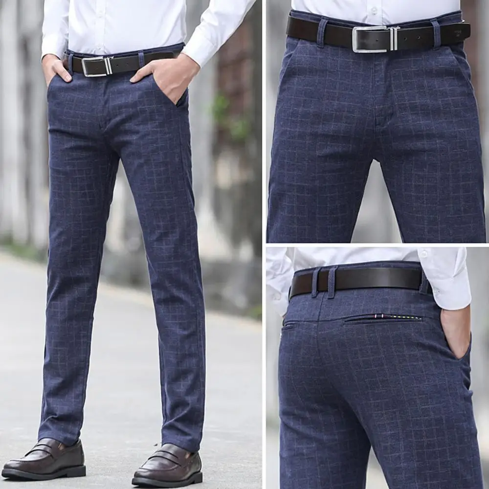 Прямая поставка, Мужские осенне-зимние клетчатые длинные облегающие брюки с карманами, офисные классические брюки