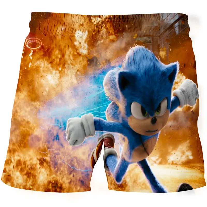 Летние Удобные Пляжные свободные шорты sonic, мужские повседневные штаны, шорты с 3D-принтом, детская одежда, детские шорты, От 4 до 14 лет
