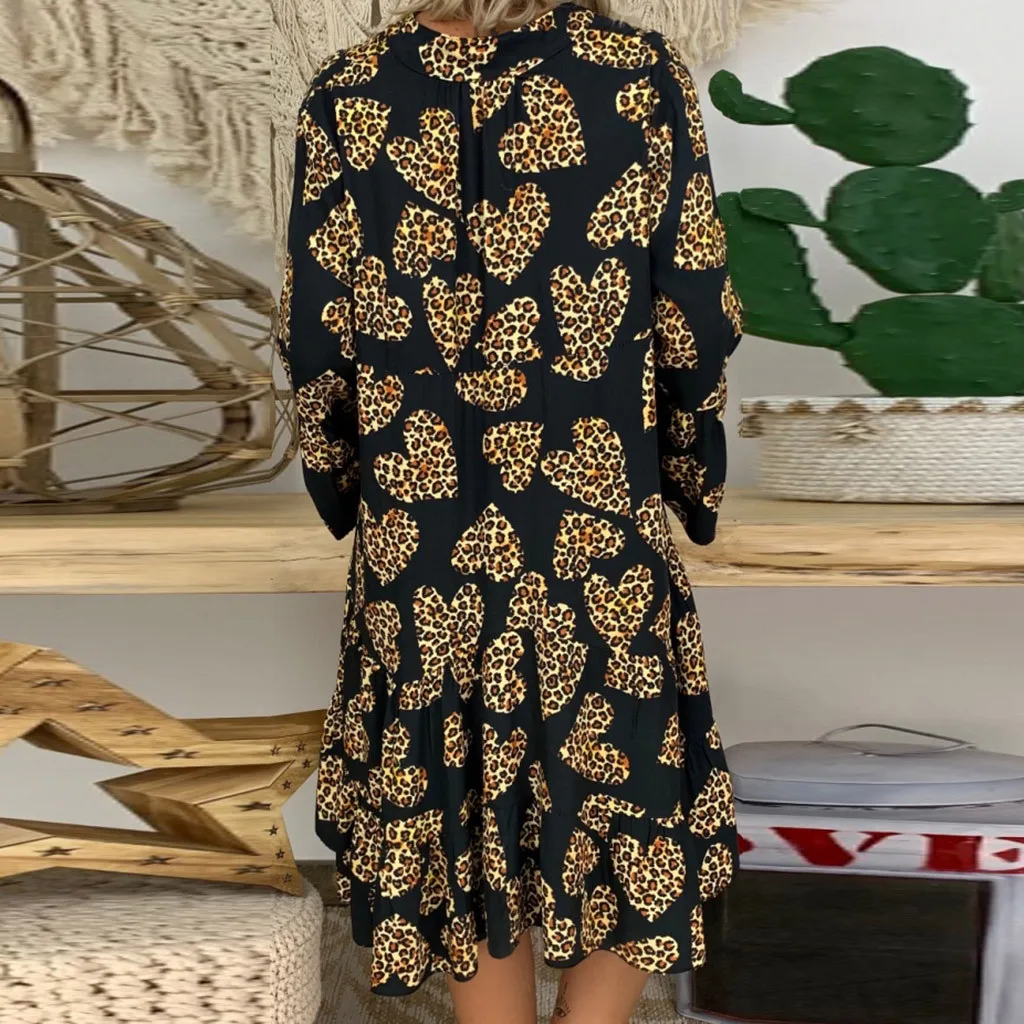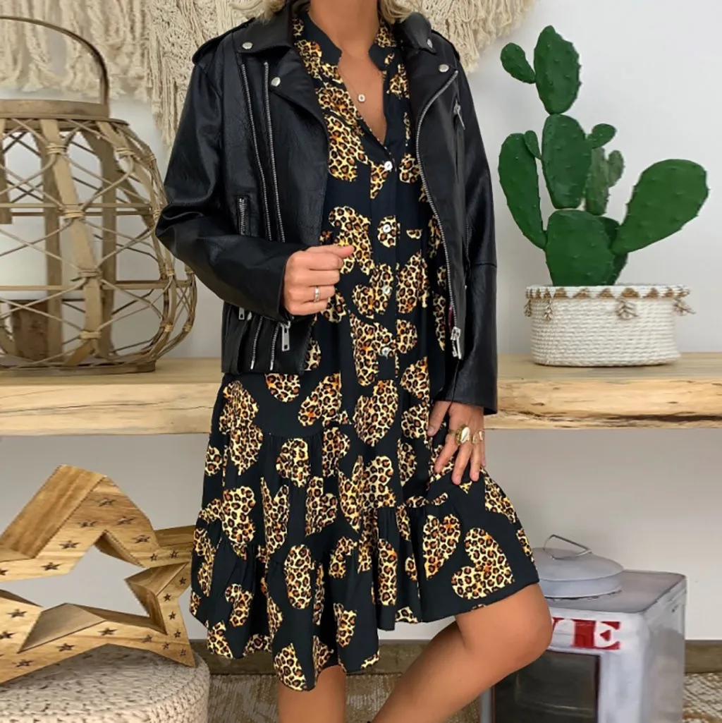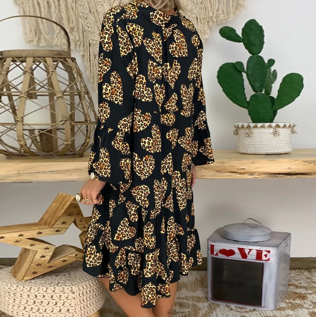 Женское этническое мини-платье, свободное, с V-образным вырезом, оборками, длинным рукавом, на пуговицах, короткое, богемное пляжное платье