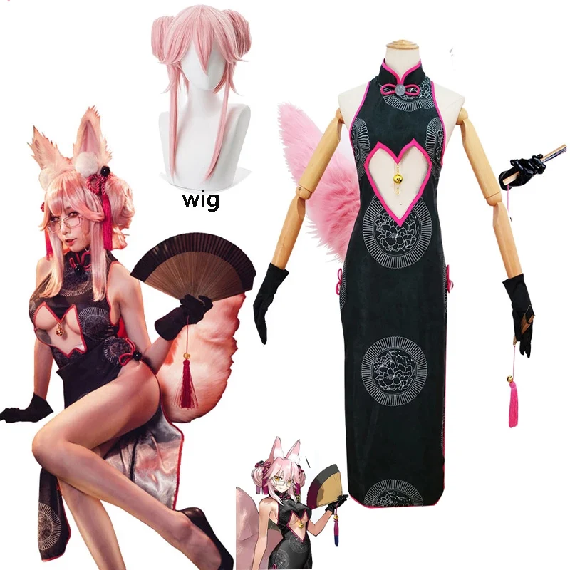Костюм для косплея аниме FGO Fate Grand Order tammo no Mae костюмы для косплея койянская лиса секретарь Чонсам наряд Униформа парик очки