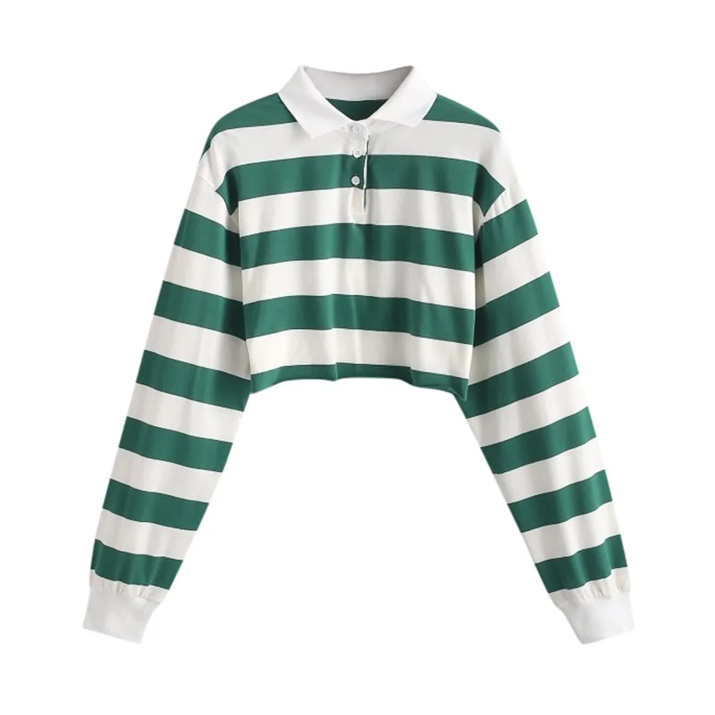 Женская толстовка в полоску с отворотом, облегающие укороченные толстовки с отложным воротником и длинным рукавом, женские сексуальные короткие свитшоты для девушек, женская блуза