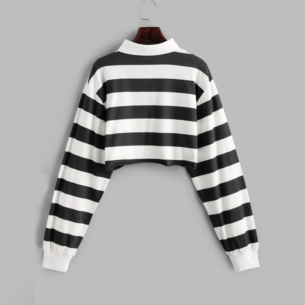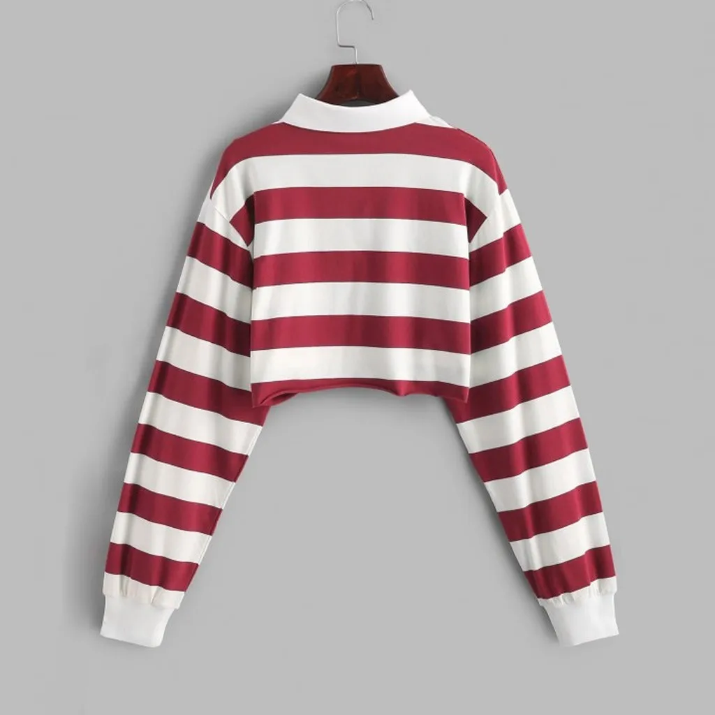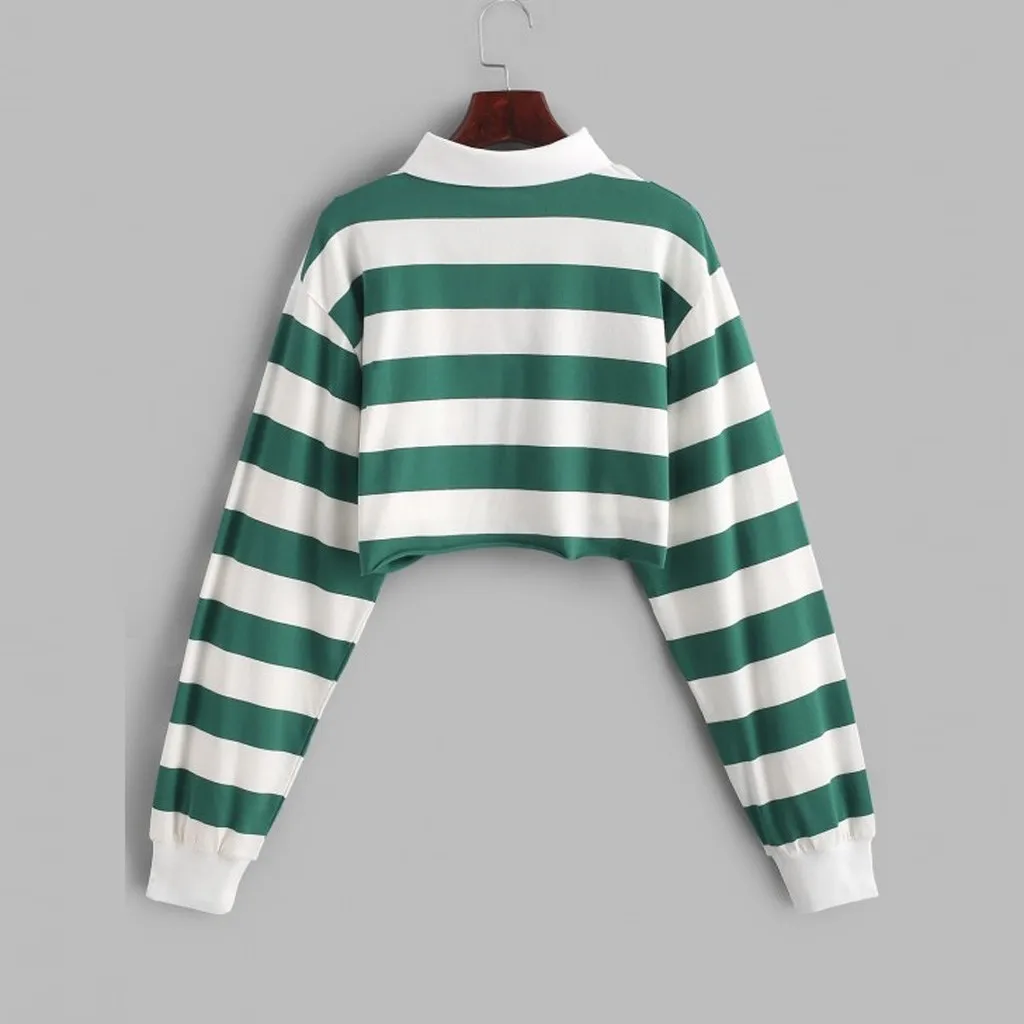 Полосатая толстовка с отворотом, Женская облегающая укороченная толстовка с отложным воротником и длинным рукавом, женские сексуальные короткие толстовки для девочек, Bluza damска