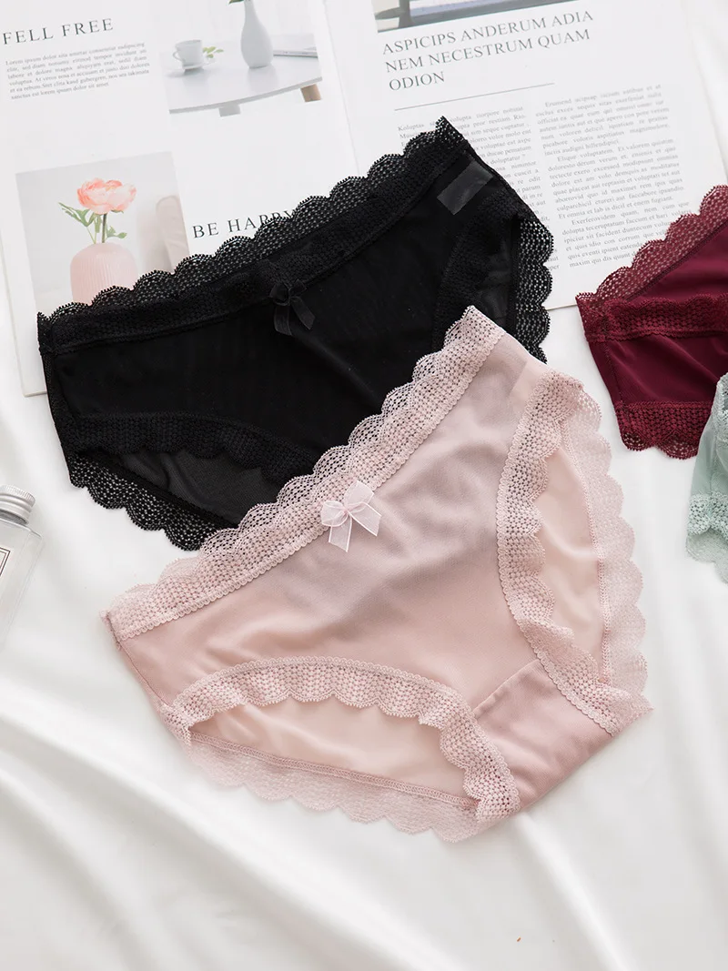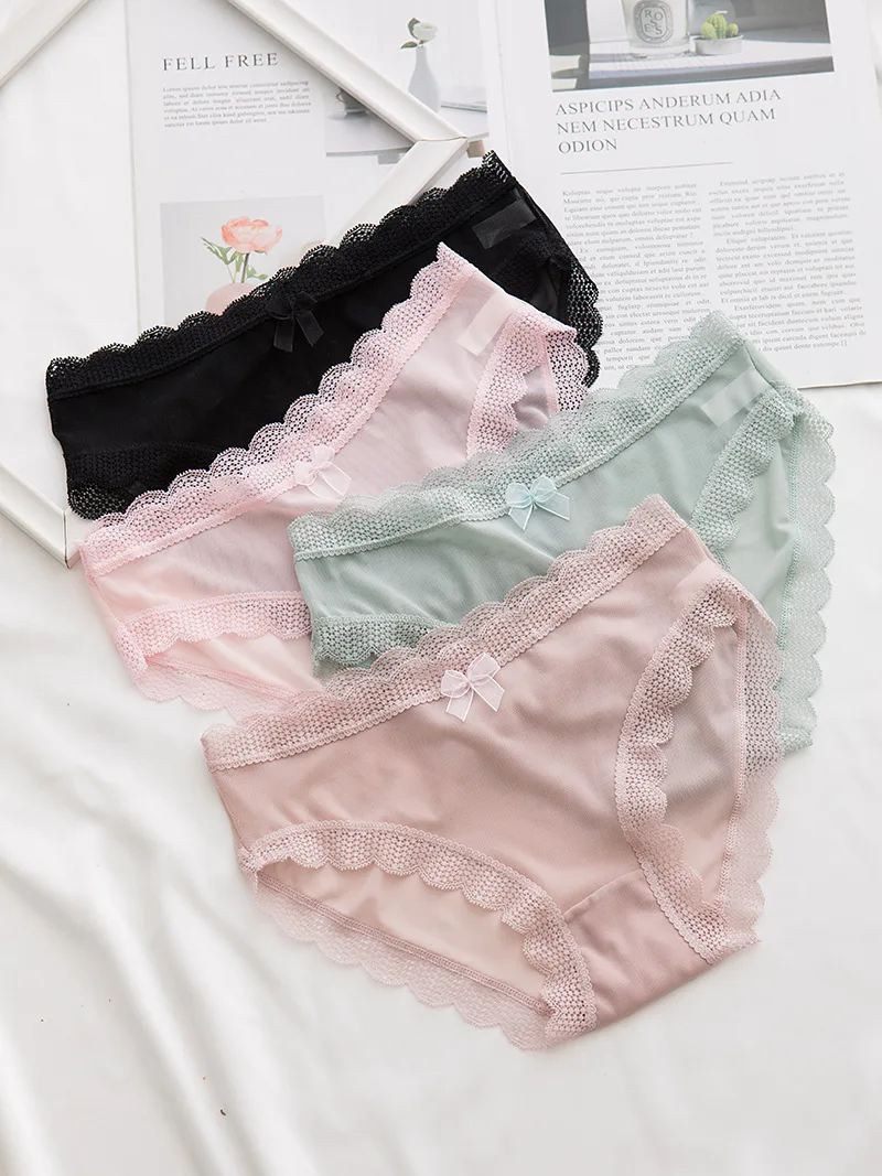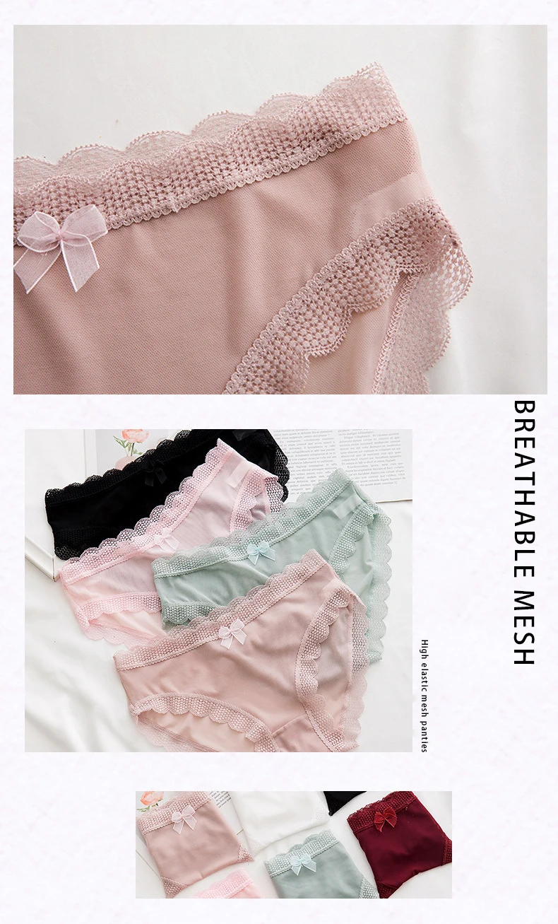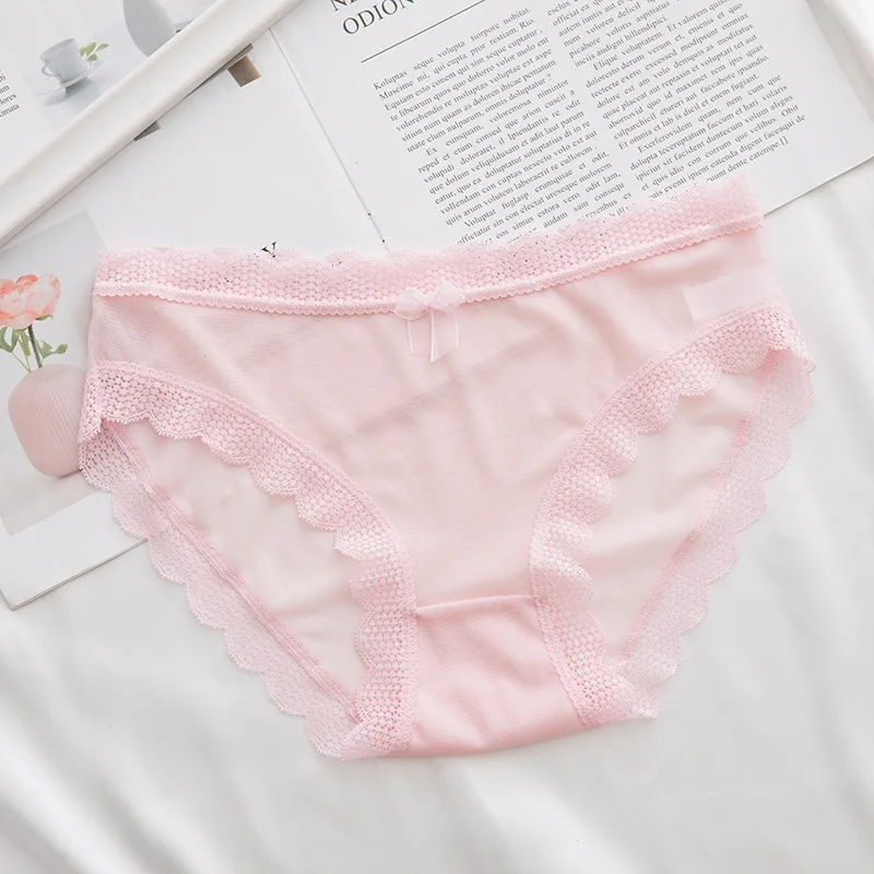 Трусики, брифы, женская одежда, интимные аксессуары, бикини, розовое мягкое милое Сетчатое кружевное хлопковое бесшовное нижнее белье для девушек