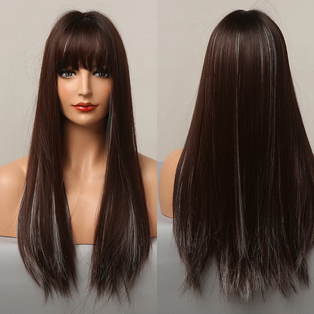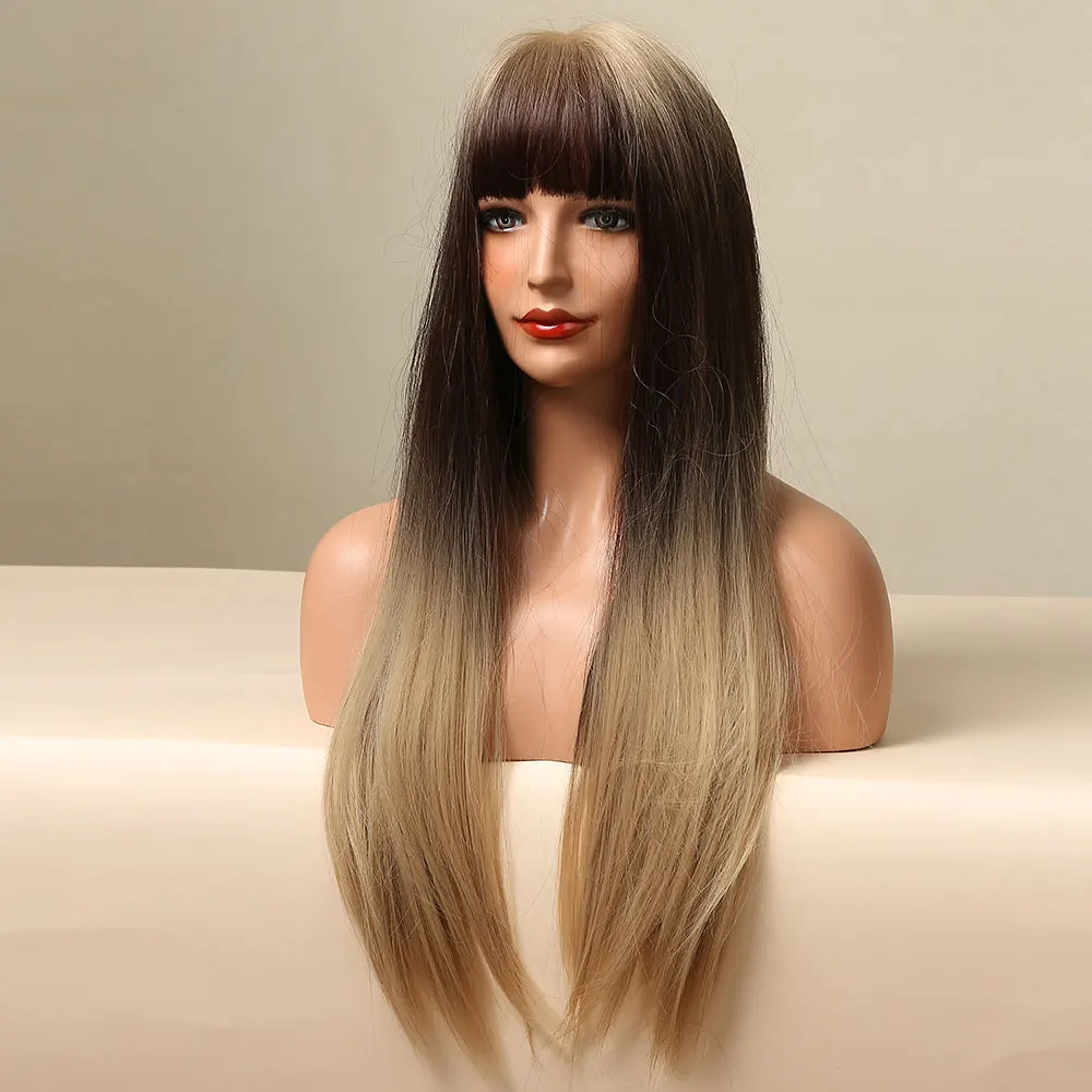 Парики для косплея, длинные прямые, синтетические, коричневые, светлые, с эффектом деграде, с челкой