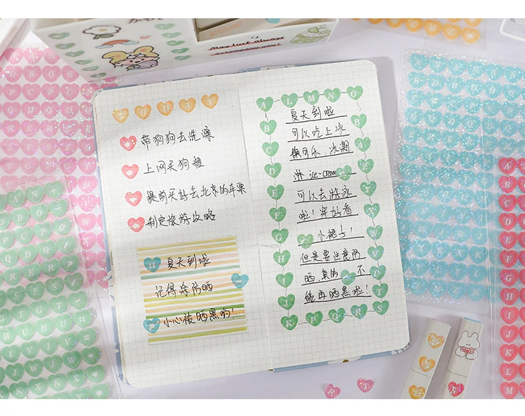 Красочный в форме сердца буквы-Стикеры, милые наклейки в виде сердца, для ежедневника, журнала, корейские Канцтовары