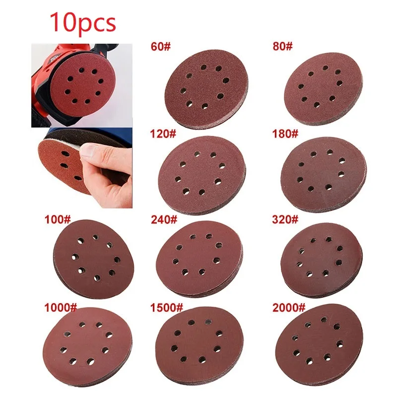 10 шт., наждачные диски с 8 отверстиями, 125 мм, 5 дюймов