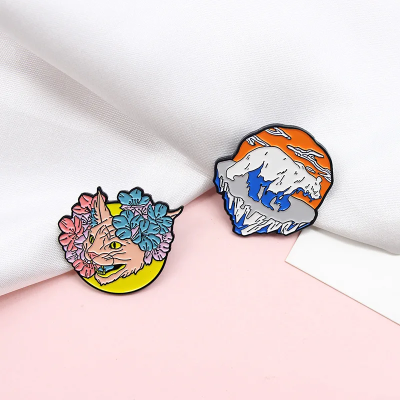 Брошь с эмалью GDHY, в виде леса, морских животных, кота, чайки, по...