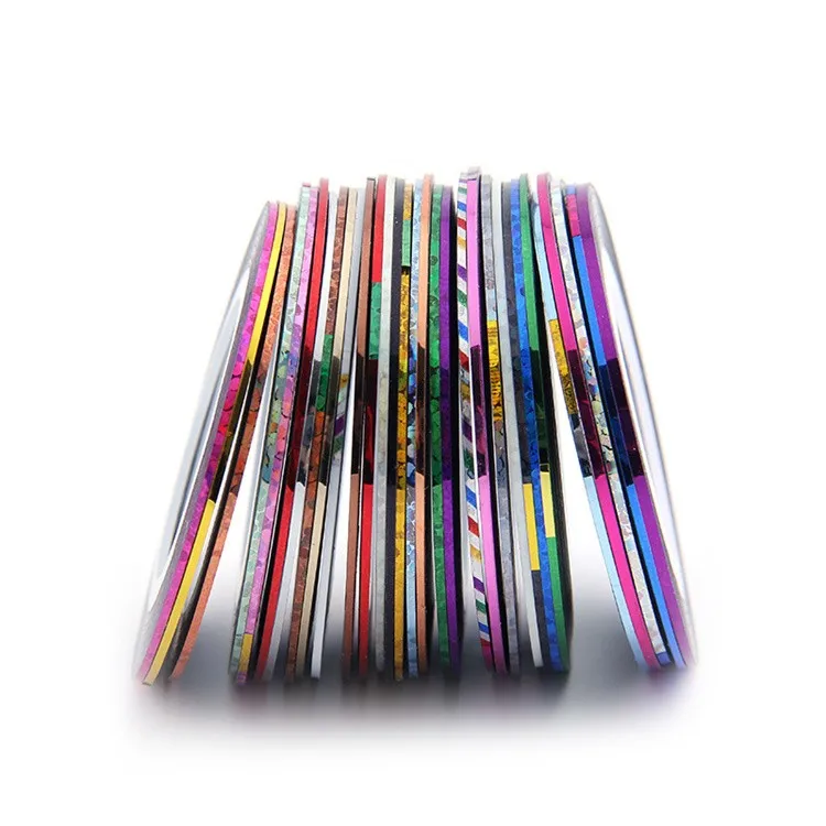 30 рулонов + 1 чехол, разные цвета, рулоны ленты для нанесения полос, самодельные наклейки для дизайна ногтей, декоративная наклейка, Нейл-арт, металлические полоски из пряжи
