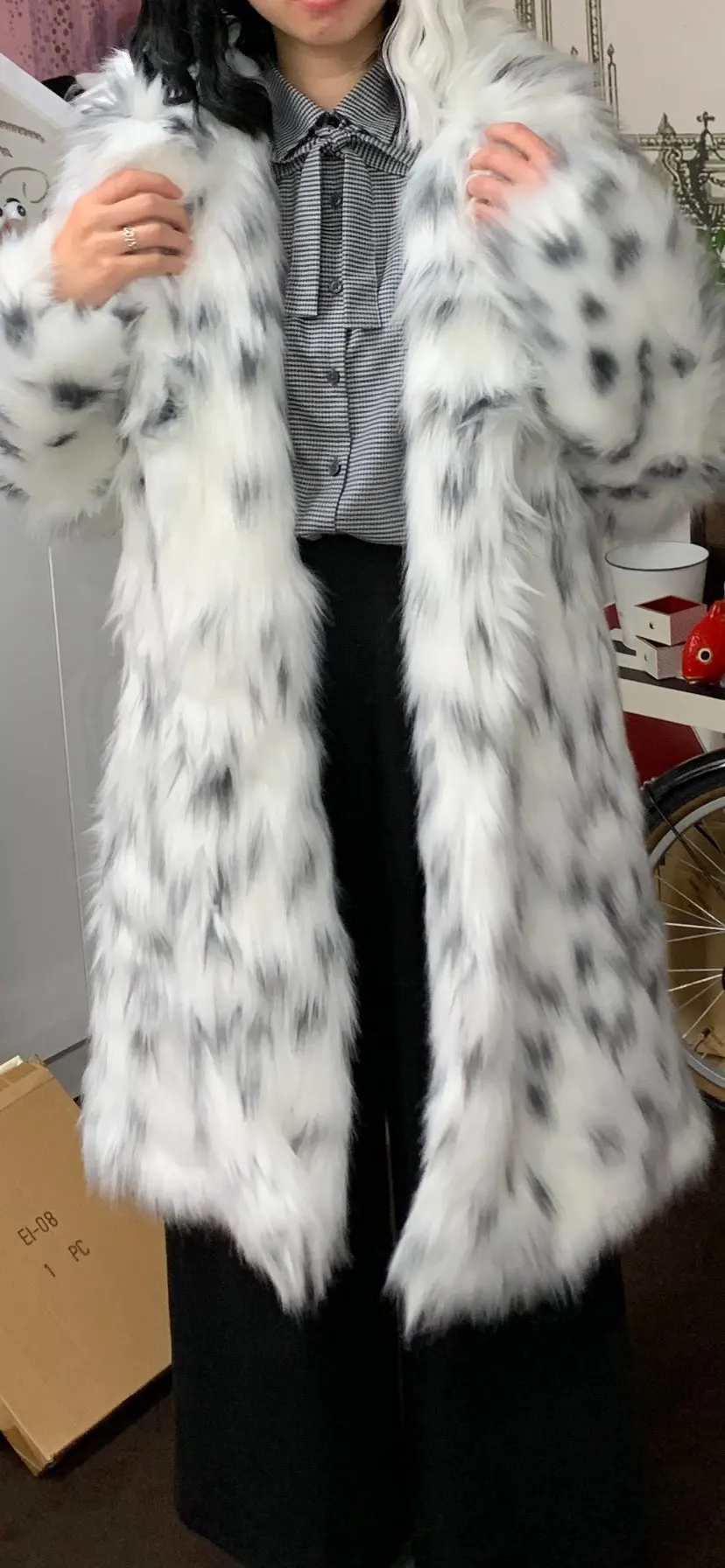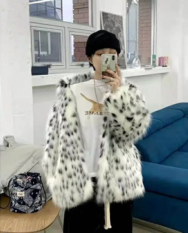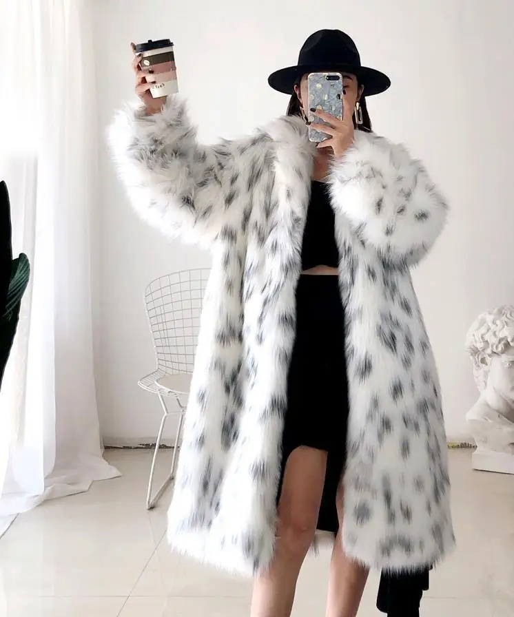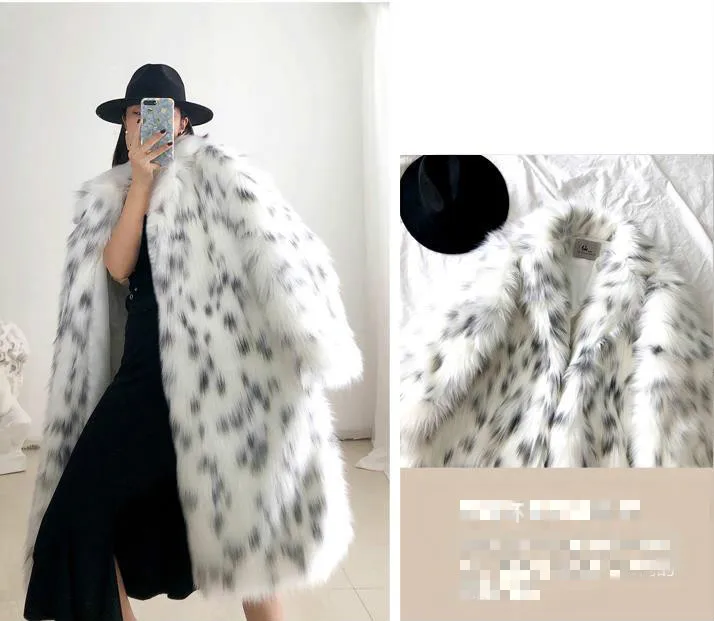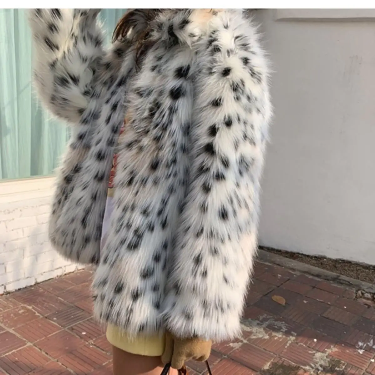 2021 Женское зимнее новое пальто из искусственного меха лисы, женская повседневная меховая куртка с леопардовым принтом, Женская Толстая теплая плюшевая верхняя одежда средней длины