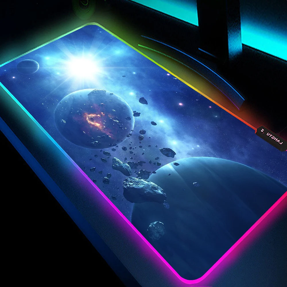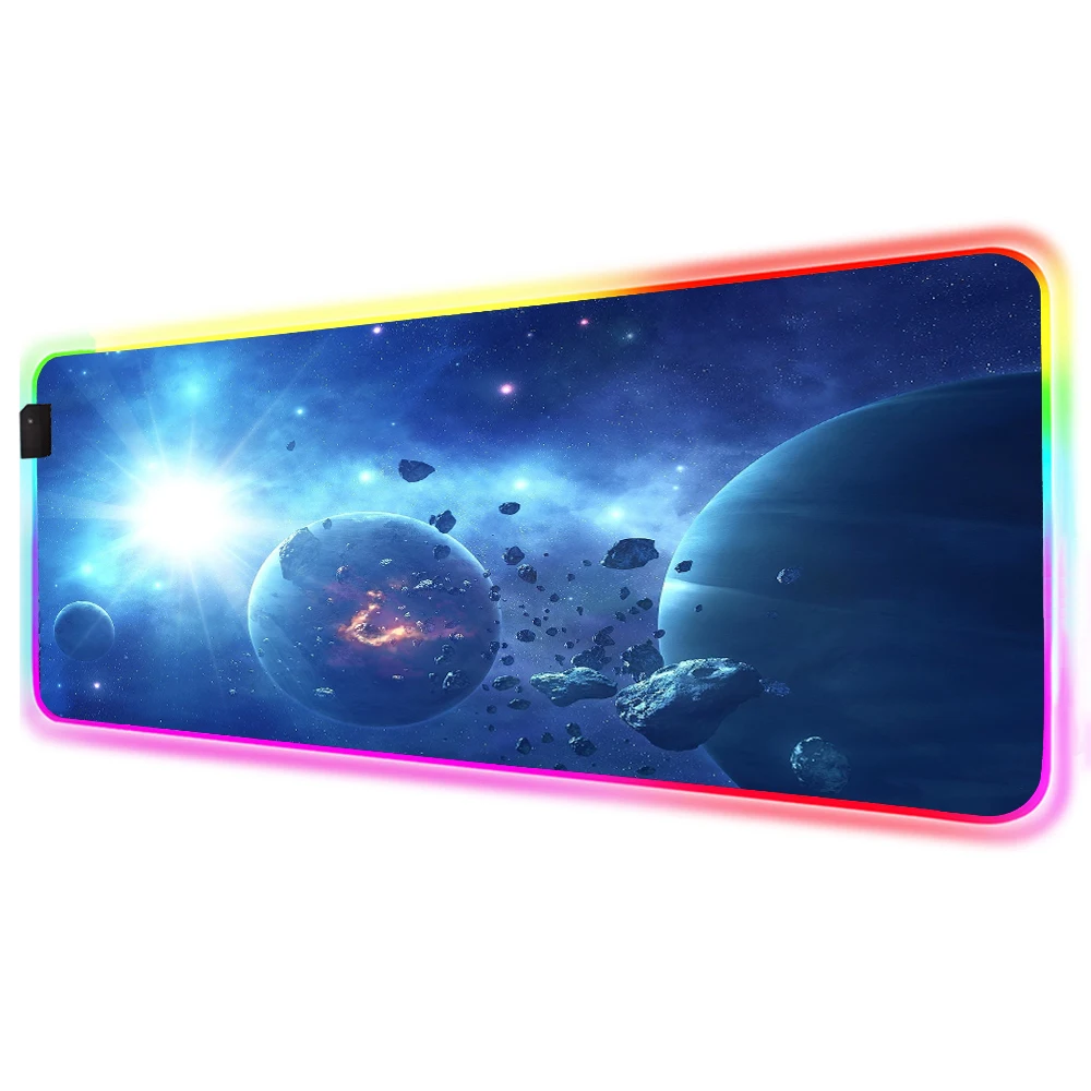 Игровой коврик для мыши с RGB-подсветкой, большой компьютерный ковр...