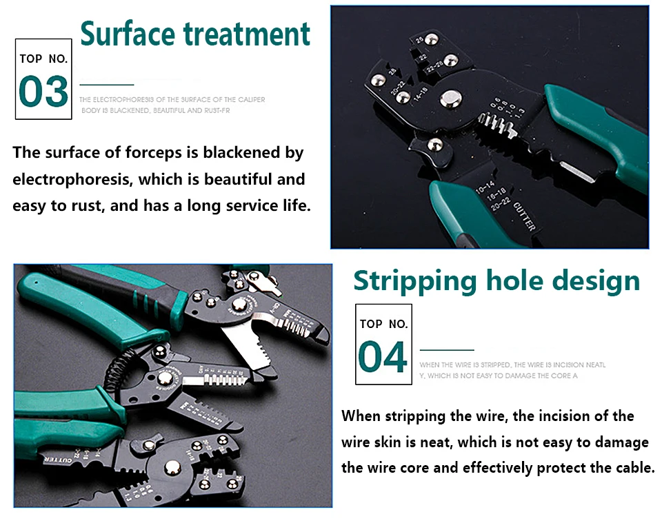 01: зеленые щипцы для зачистки ручек02: двухцветные щипцы для зачистки ручек03: плоскогубцы для зачистки кабеля04: многофункциональные плоскогубцы05: Обжимные Плоскогубцы