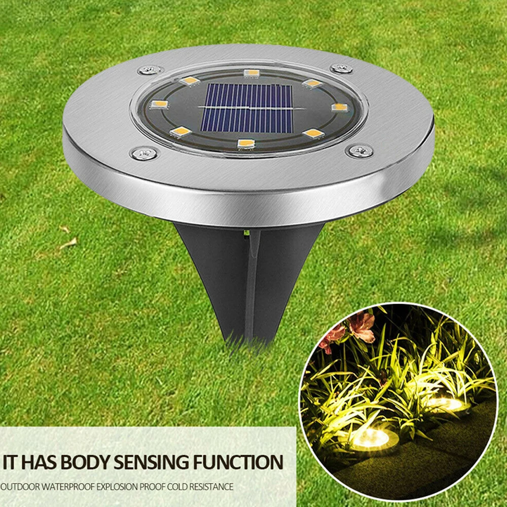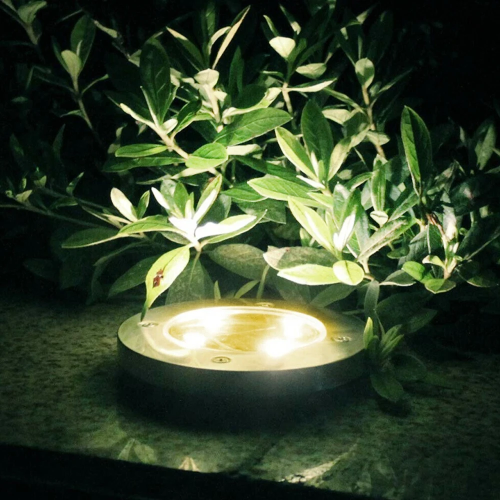 Наземный светильник лампа диск на солнечных батарейках устойчивый светодиодный фонарь датчик для улицы сада дачи газона земли