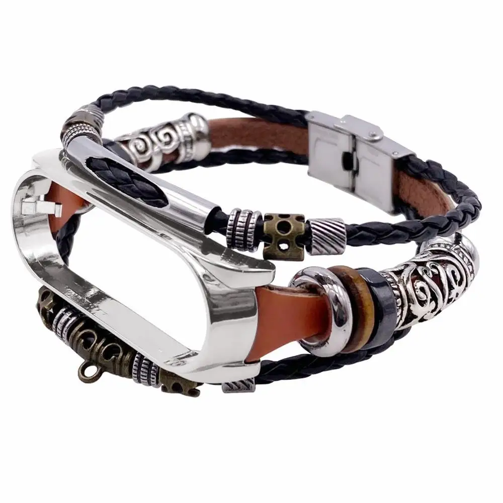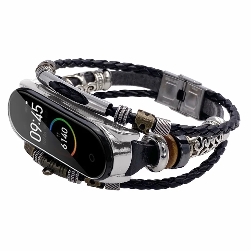 Ремешок в стиле ретро для Mi Band 4 3, ремешок на запястье для Xiaomi Mi Band 5, сменный модный кожаный ремешок с бусинами для mi band 5, ремешок