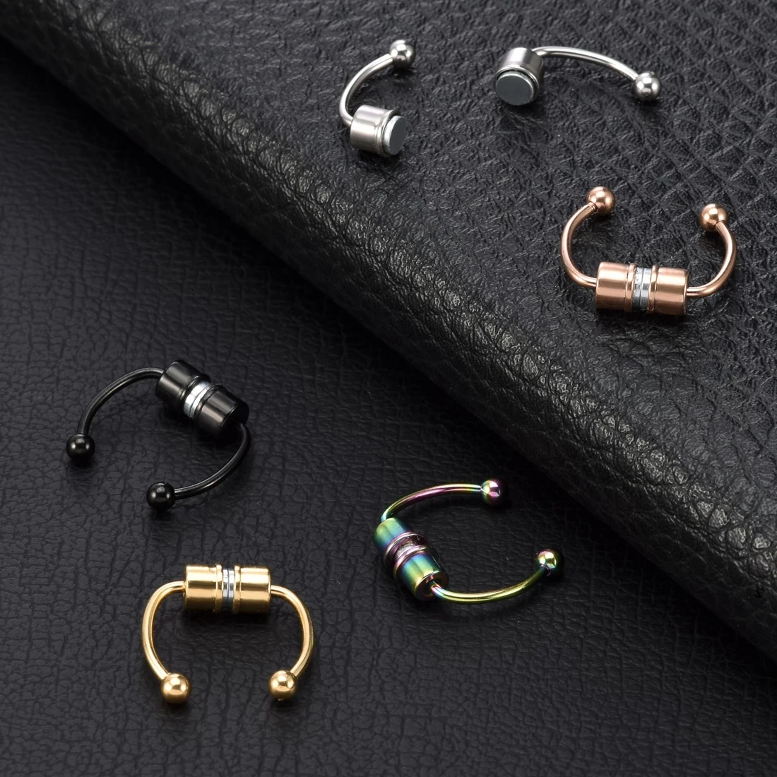 Новый 2021 нержавеющая сталь магнитный фальшивый нос кольцо подковы титановая сталь кольцо искусственный нос кольцо удар