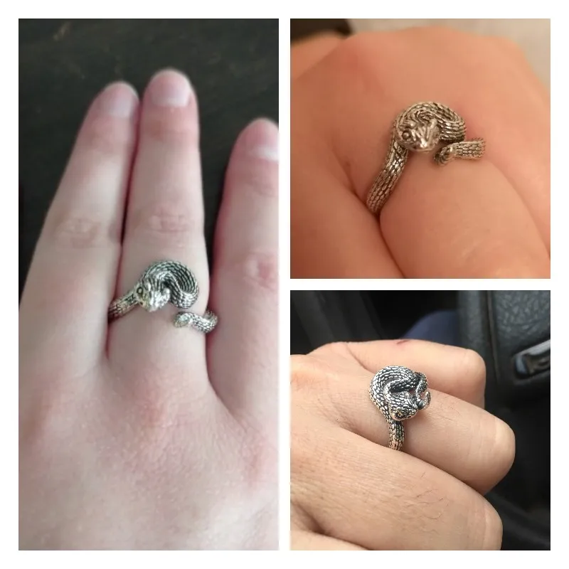 Кольцо регулируемое в виде змеи из металлического сплава для мужчин...
