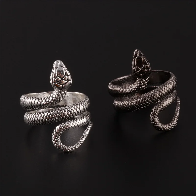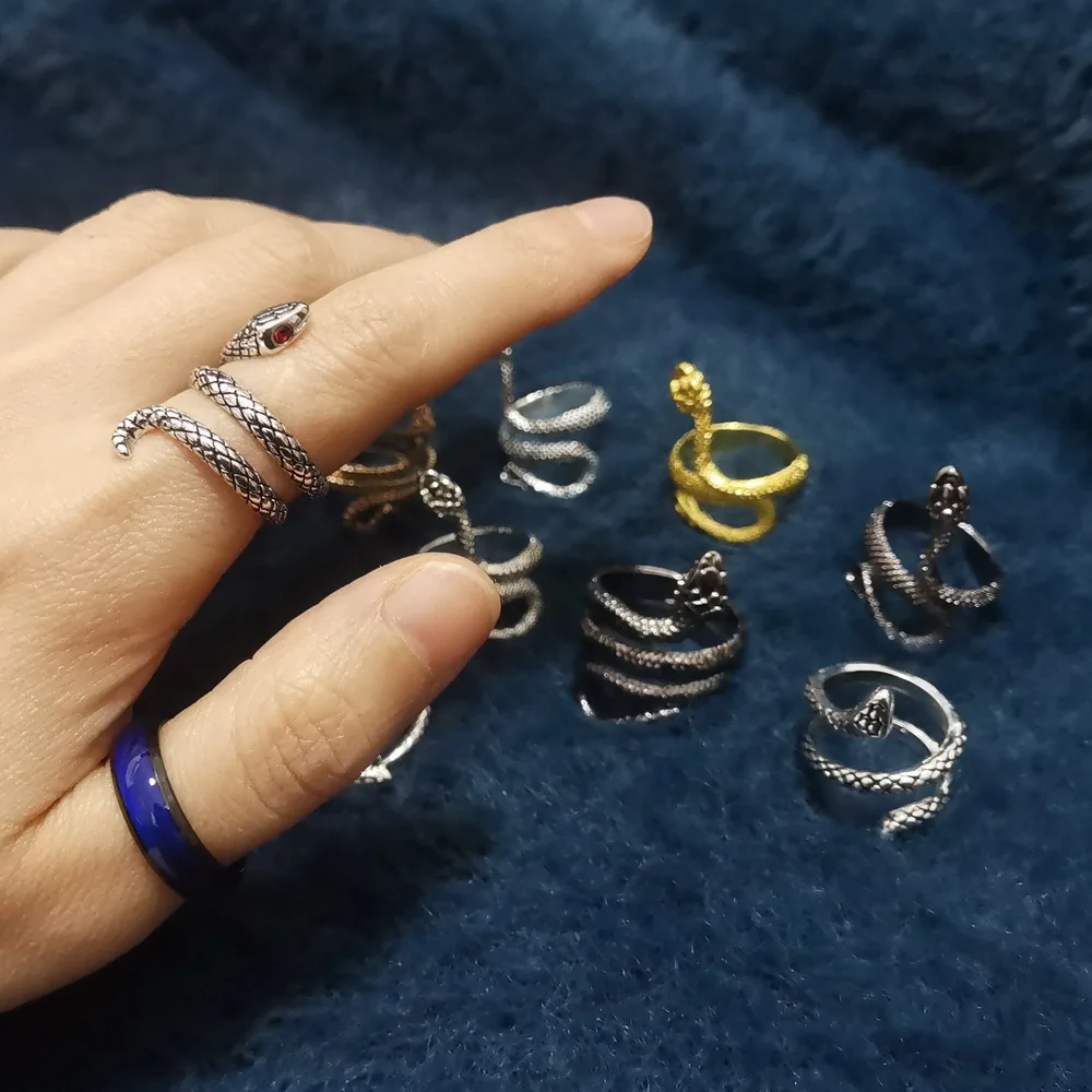 Мужские и женские кольца в стиле панк, регулируемые кольца со змеин...