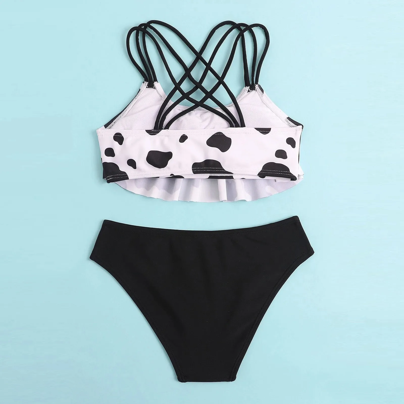 Раздельный купальник для девочек # VW 2021, детский купальник из двух частей с цветочным принтом коровы, купальный костюм, От 2 до 12 лет