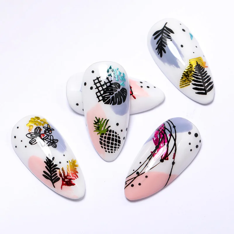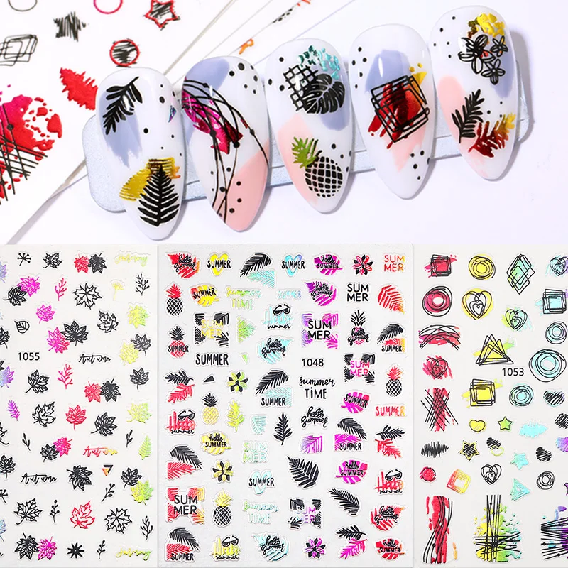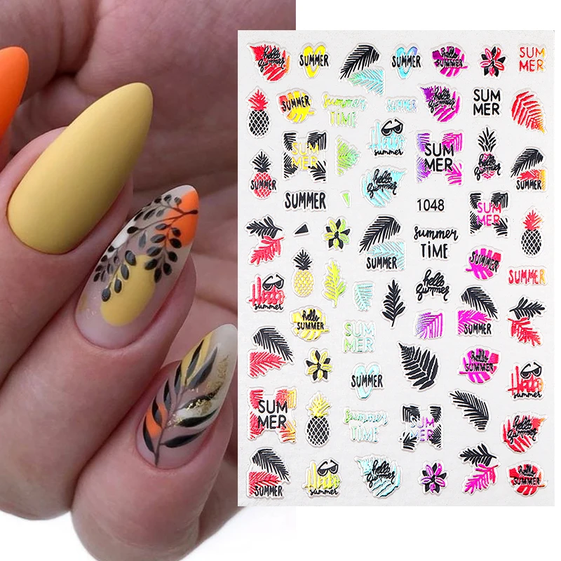 1 шт. летние тропические растения 3D наклейка для ногтей переливающиеся пляжные листья дерево переводные наклейки слайдер для ногтей украшение маникюр