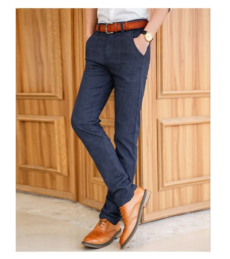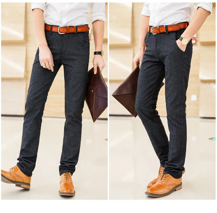 Новинка 2021, мужские брюки с начесом, хлопковые льняные повседневные брюки, Молодежные прямые деловые брюки в Корейском стиле, мужская одежда