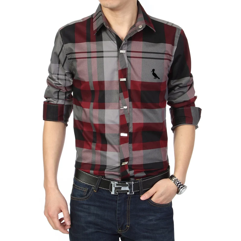 Рубашка мужская в клетку, на осень и весну, повседневная, высокого качества