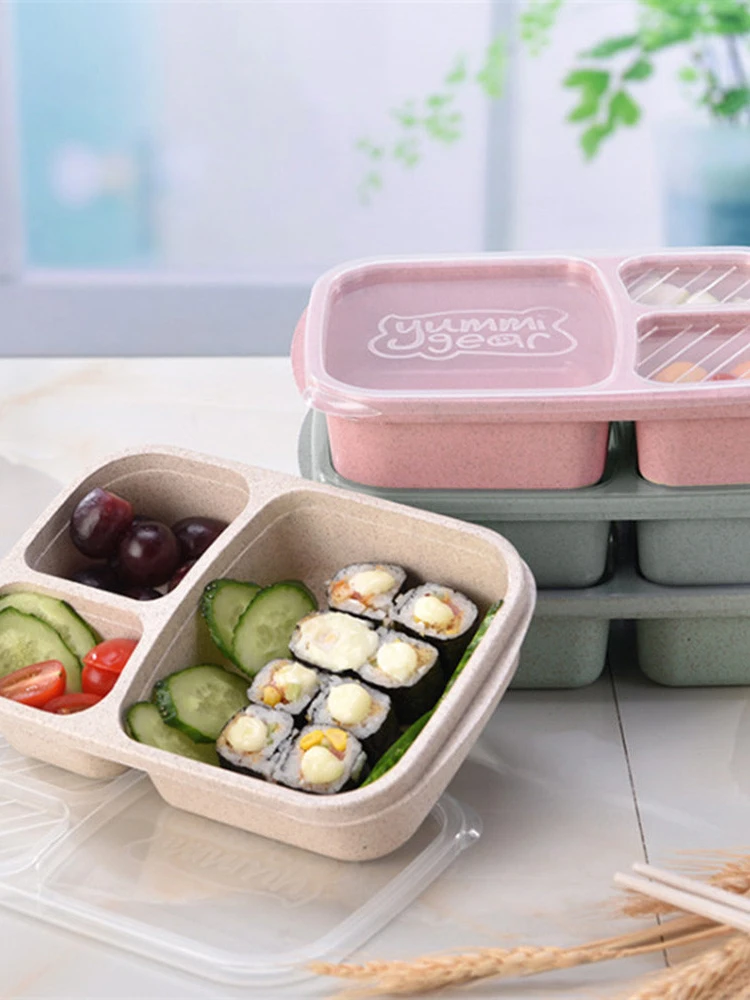 Пикник Пшеничная солома бенто 3 отсека для хранения еды ланч-контейнер для готовки еды