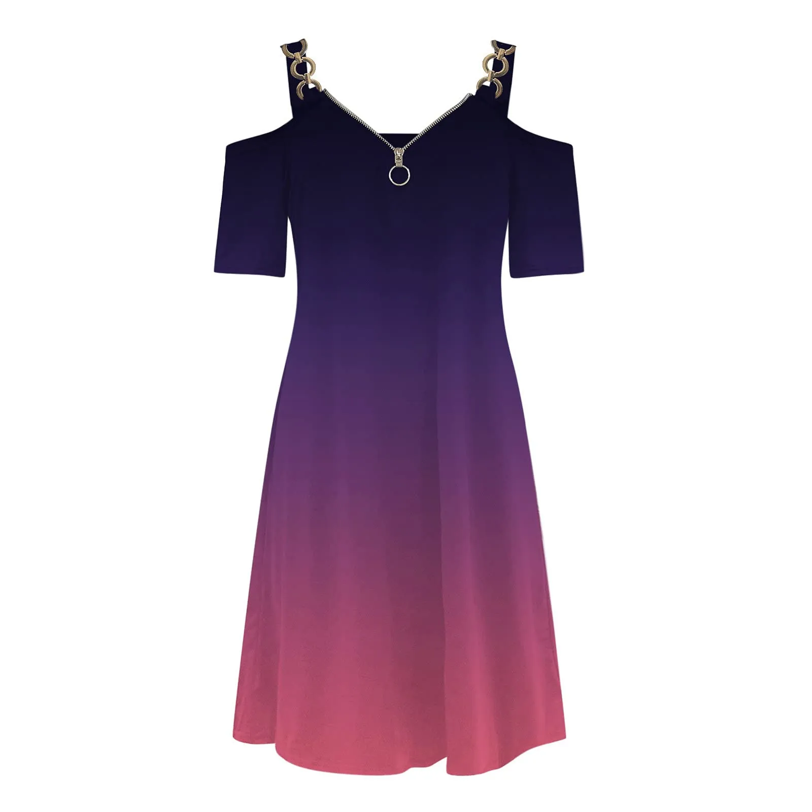 Женское летнее короткое платье с открытыми плечами и коротким рукавом на молнии с v-образным вырезом