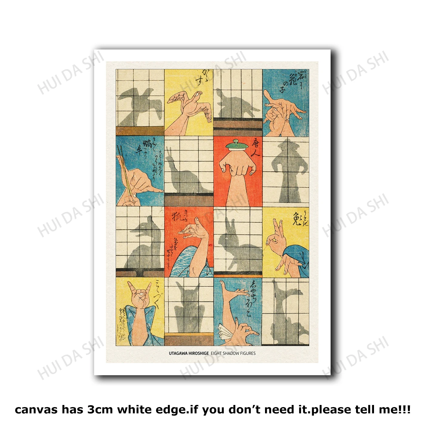 Постер с восьми тенями хирошиге, печать утагава хирошиджа, японская древесная печать блоков, изготовление теней, японское искусство, омоча-е