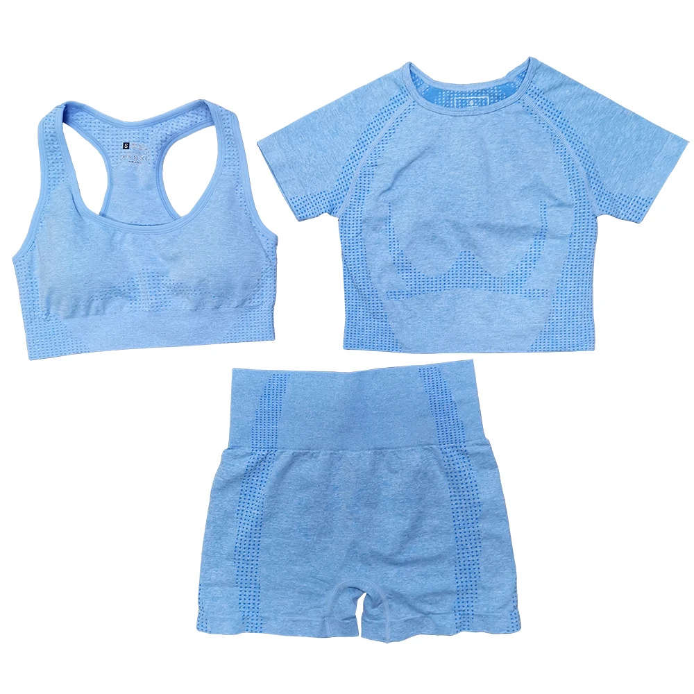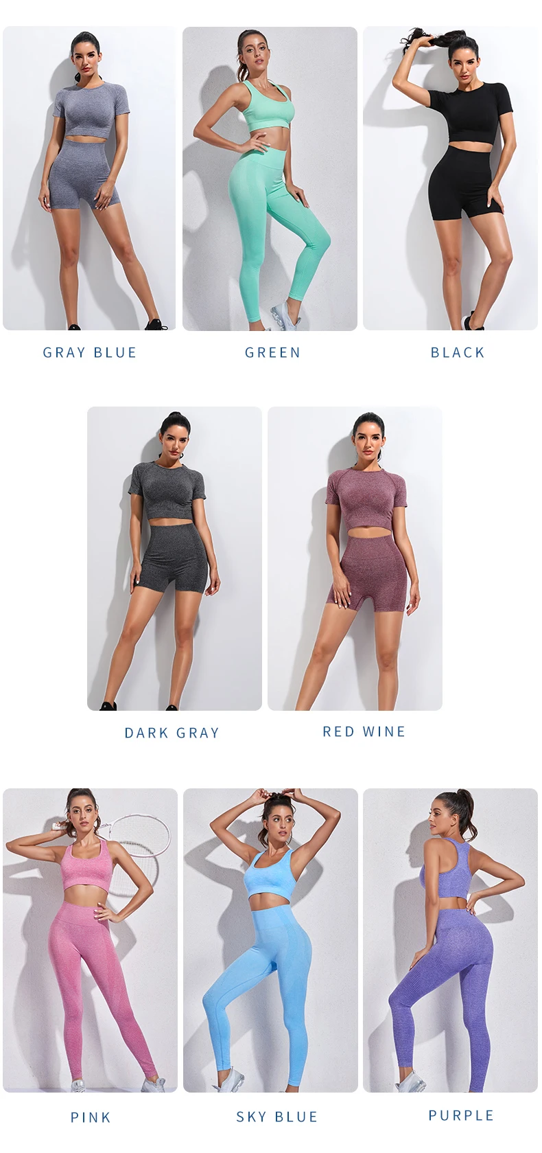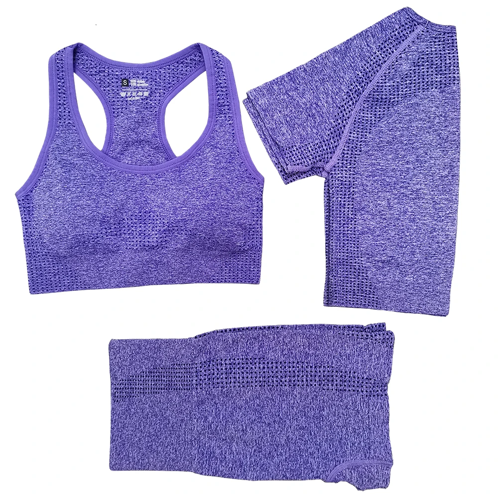 Комплект женский бесшовный для занятий йогой, топ и леггинсы с высокой талией