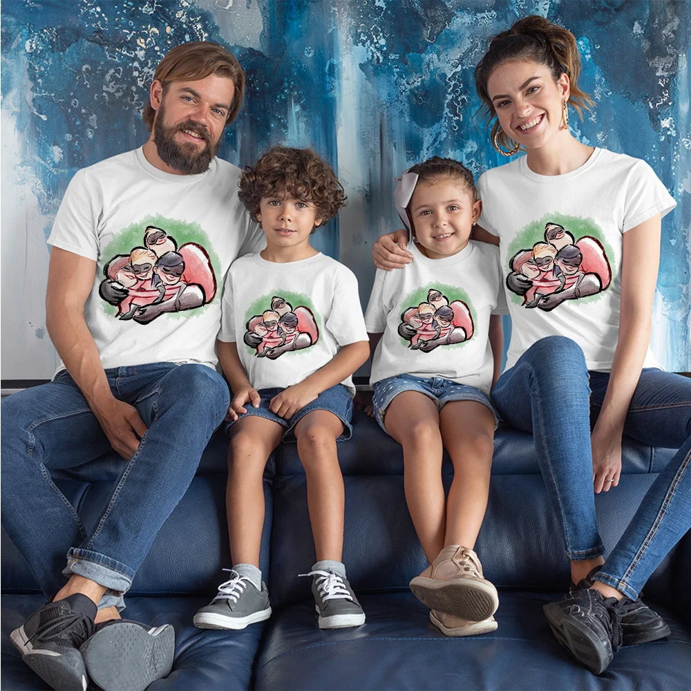 Комплекты семейной одежды, Детская футболка с мультяшным принтом, ф...