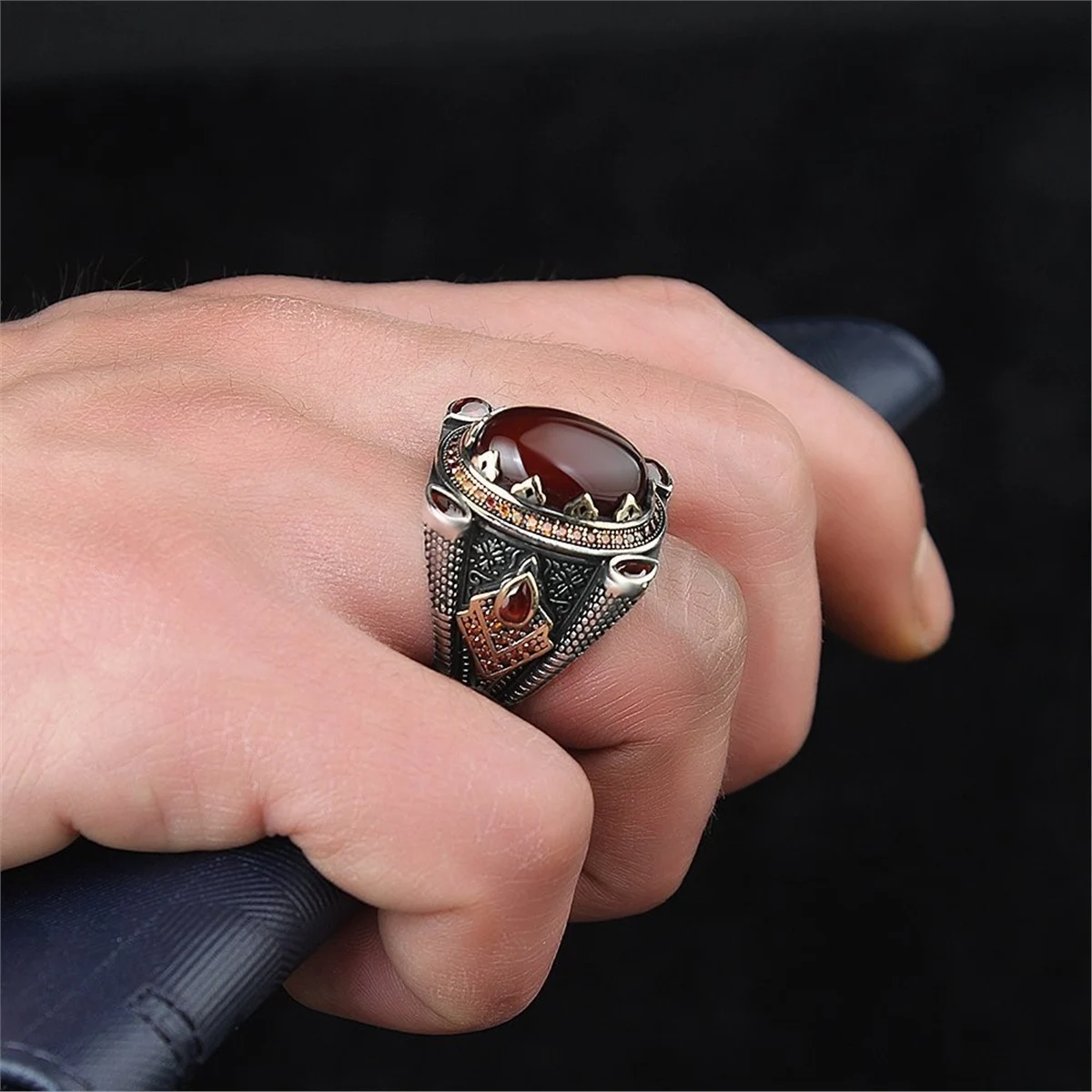 Мужское кольцо из серебра 925 пробы с драгоценным камнем Agate 925 пробы