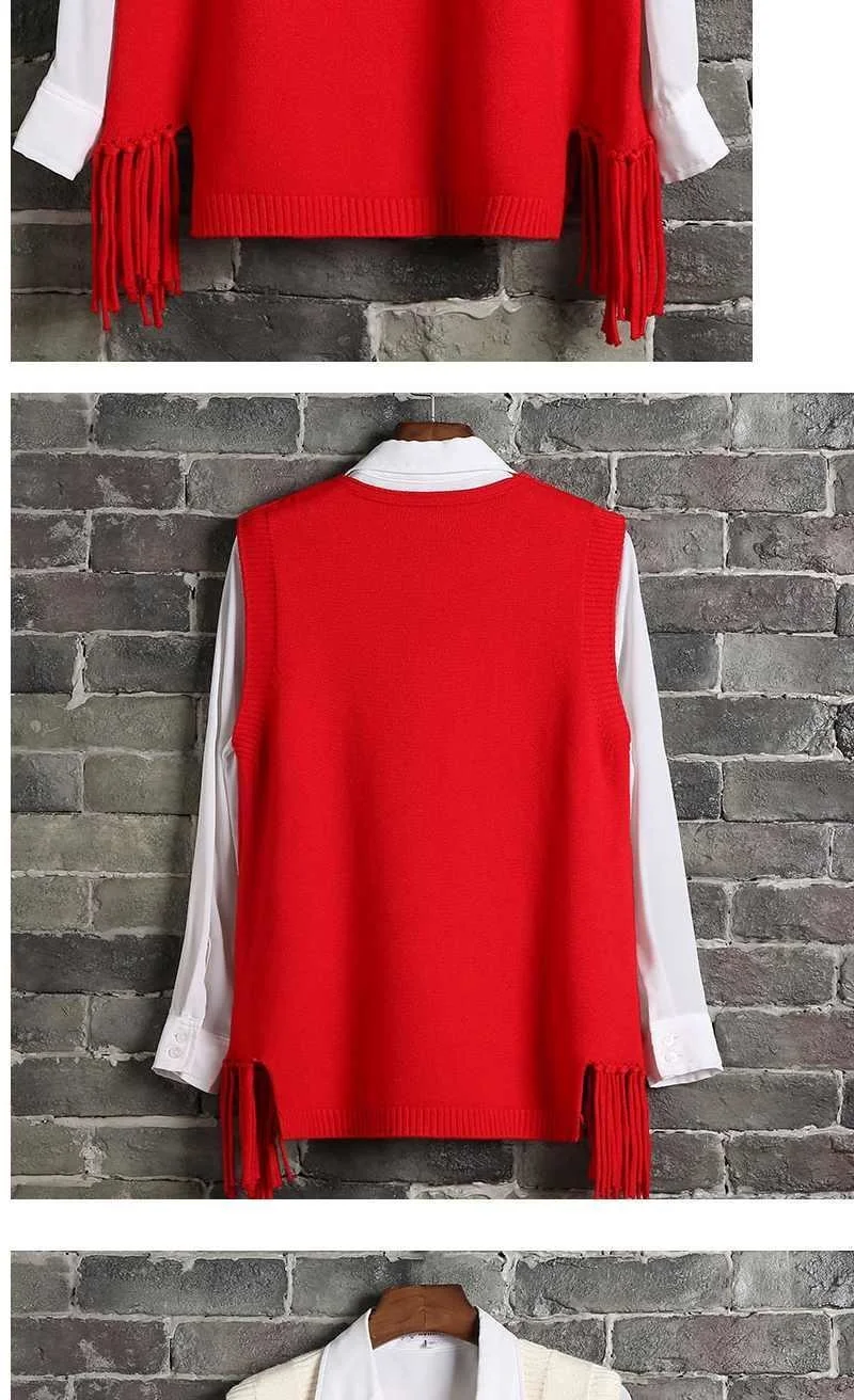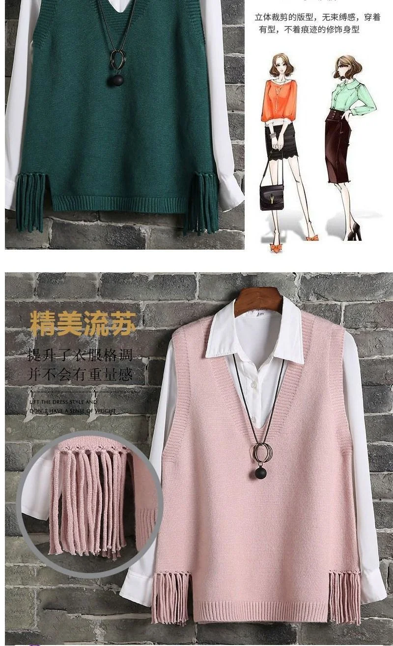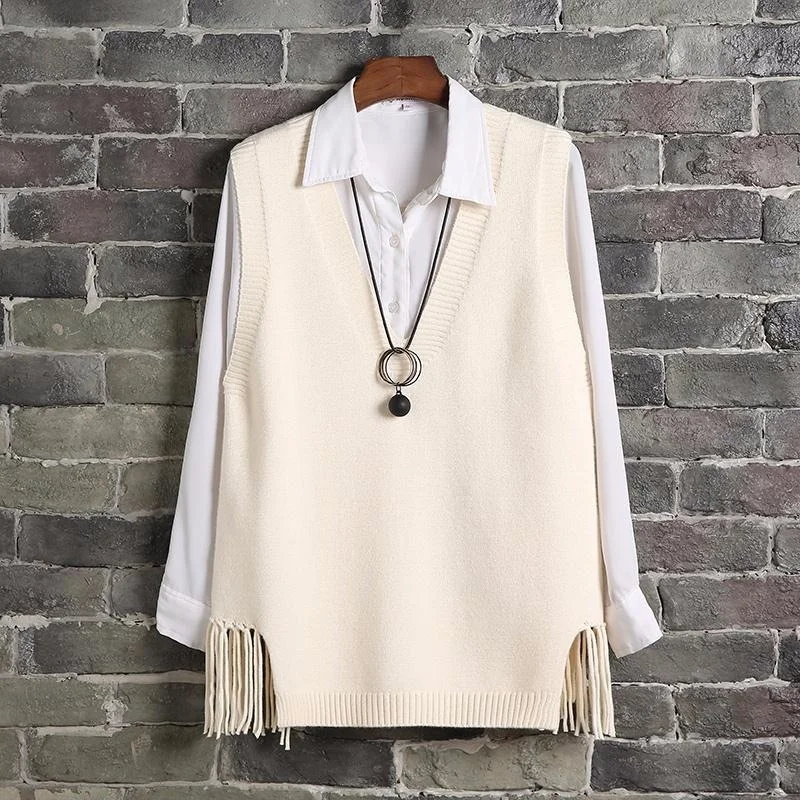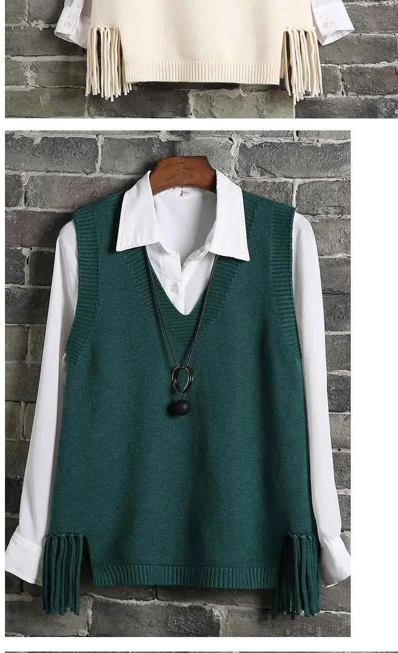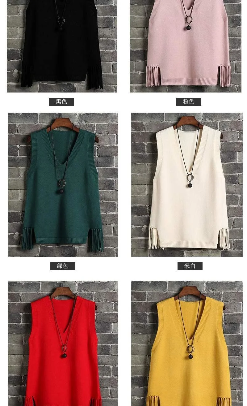 Женский вязаный жилет с V-образным вырезом, Свободный Повседневный джемпер в Корейском стиле, топы с бахромой, женская одежда, 2021