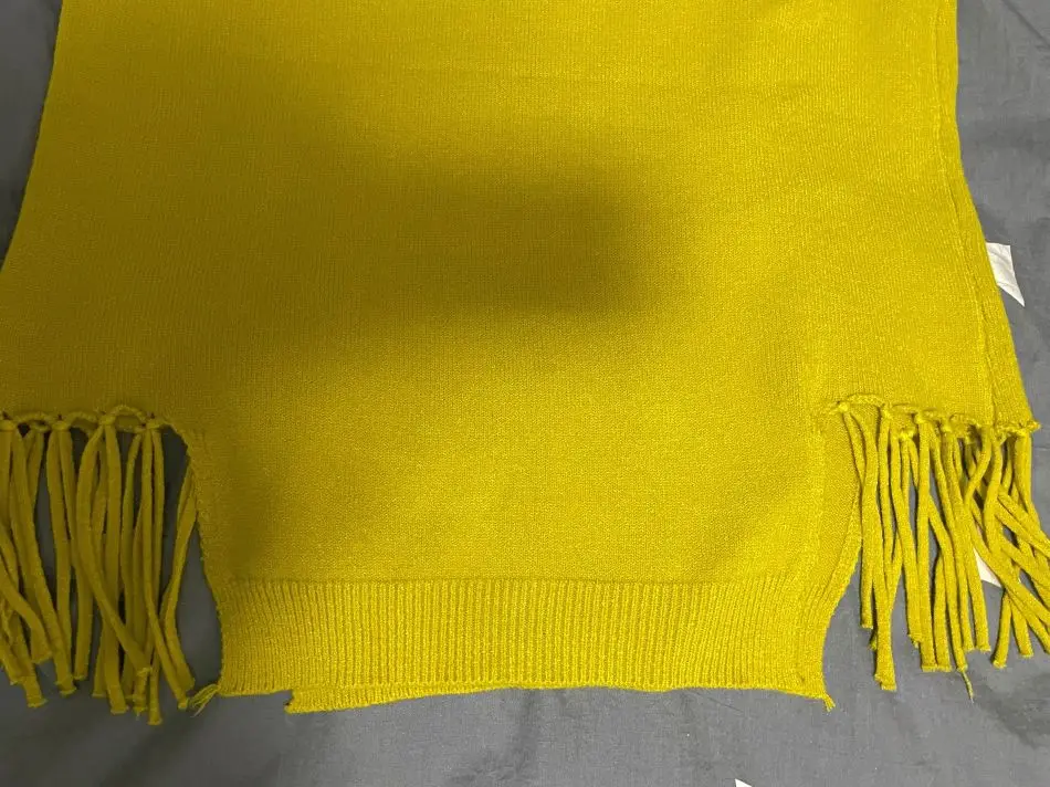 Muy buen género, bien patrón, precioso, pero talla pequeño, yo pedí la más grande y me queda un poco justo en las caderas, pero para las más delgadas es un chaleco con mucho estilo.