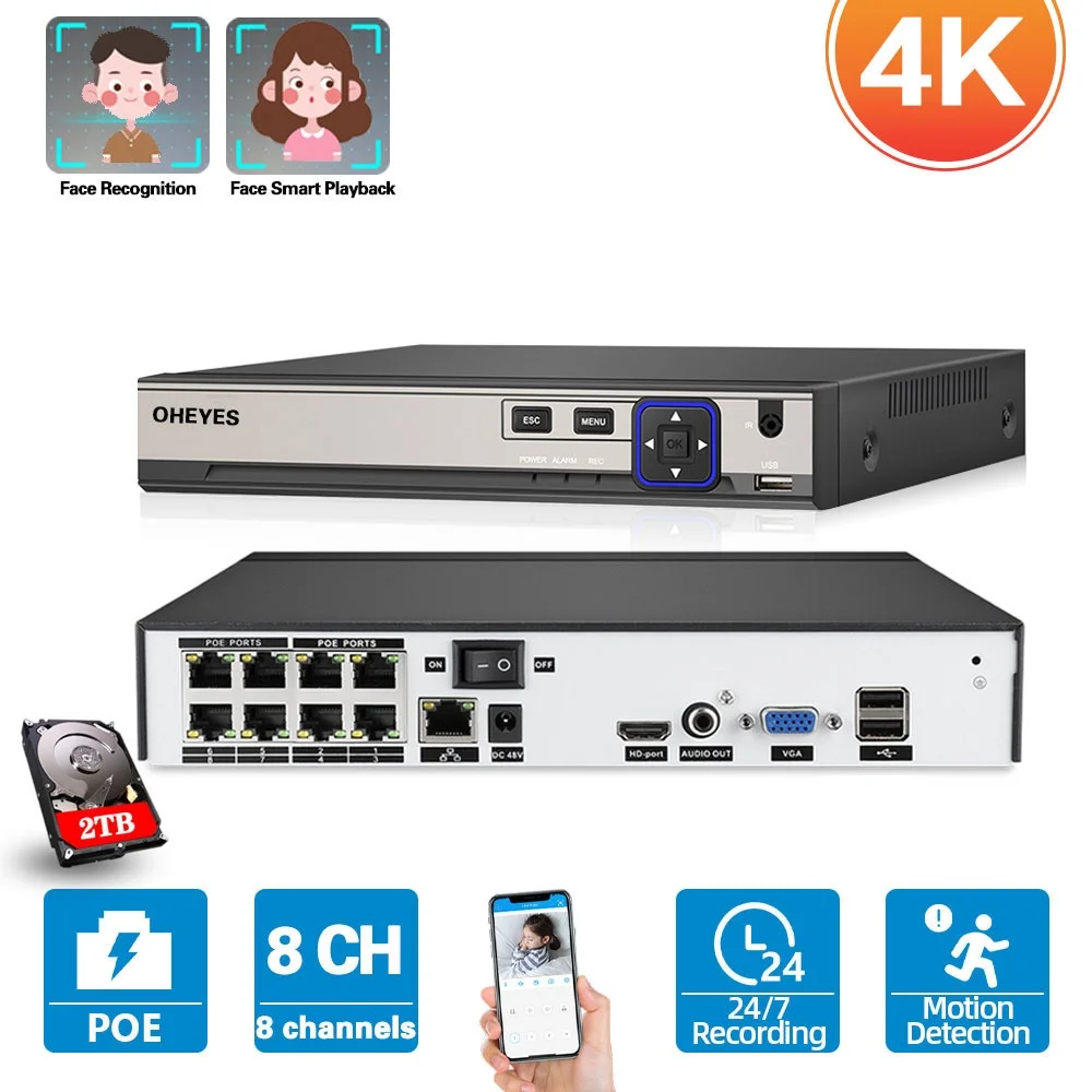 Сетевой видеорегистратор H.265, 4K 8 каналов, POE, обнаружение лица, для IP-камер 5 Мп 4 канала XMEYE, видеорегистратор 8 МП