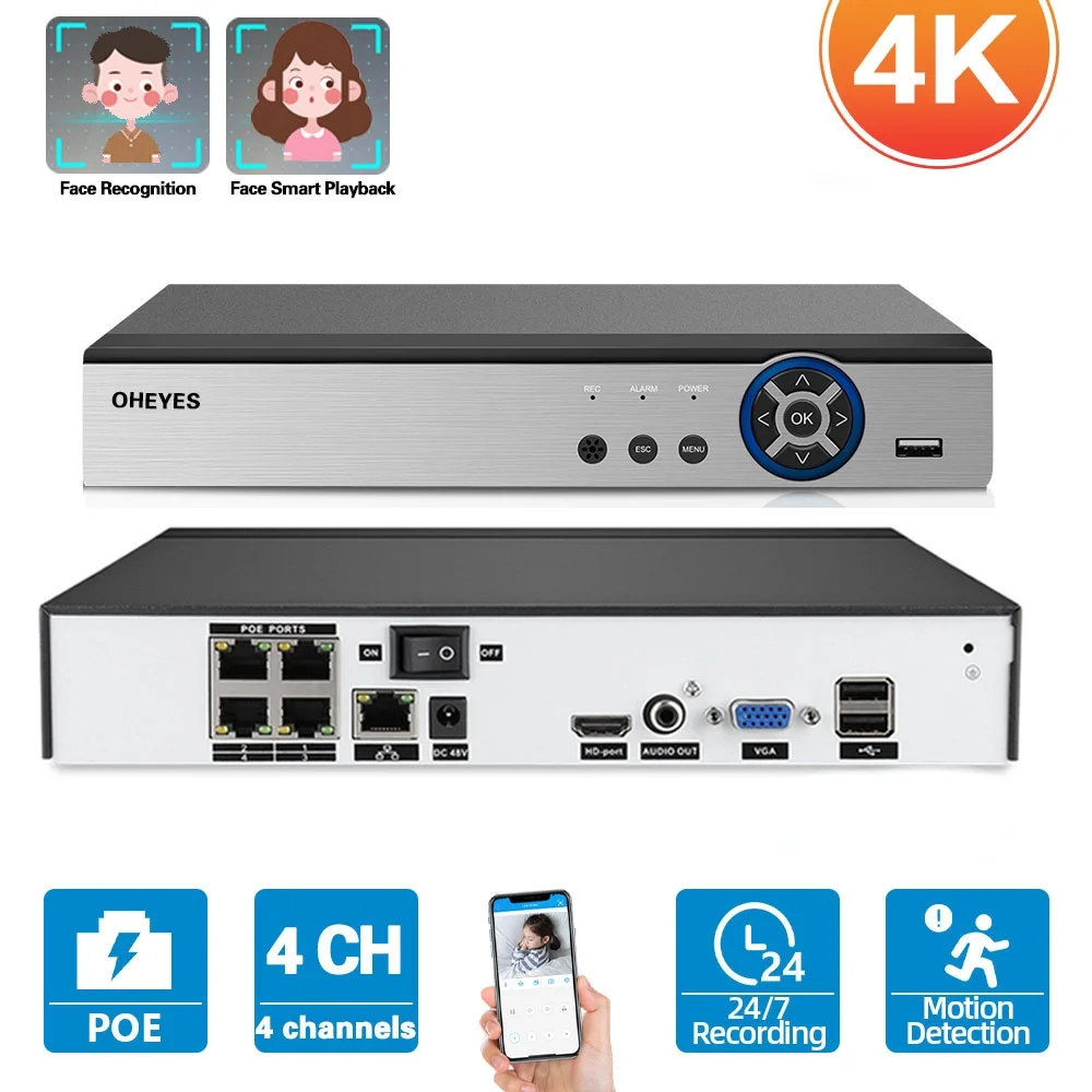 IP-камера видеонаблюдения H.265, 4 канала, POE, NVR, 5 МП, функция распознавания лица, система видеонаблюдения, сетевой видеорегистратор 4K, 4 канала, XMEYE, 8 МП