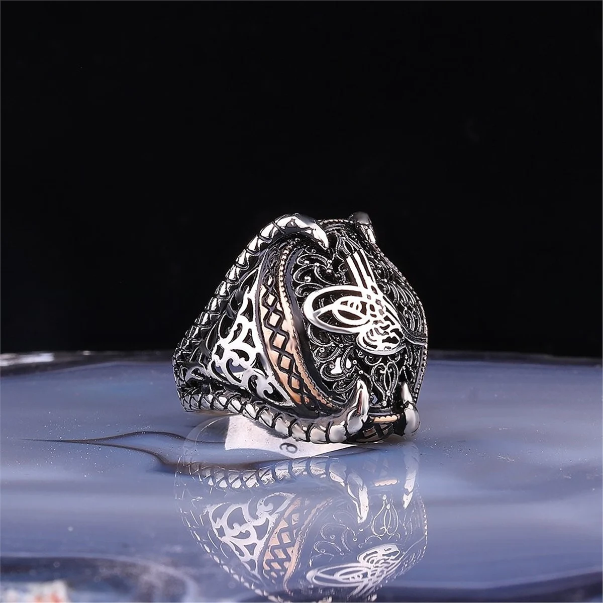 Мужское кольцо из серебра 925 пробы с Османской монограммой