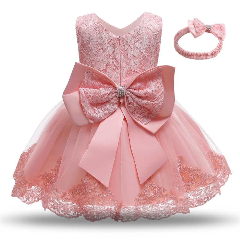 Платье для новорожденных девочек, с большим бантом, на 1 год