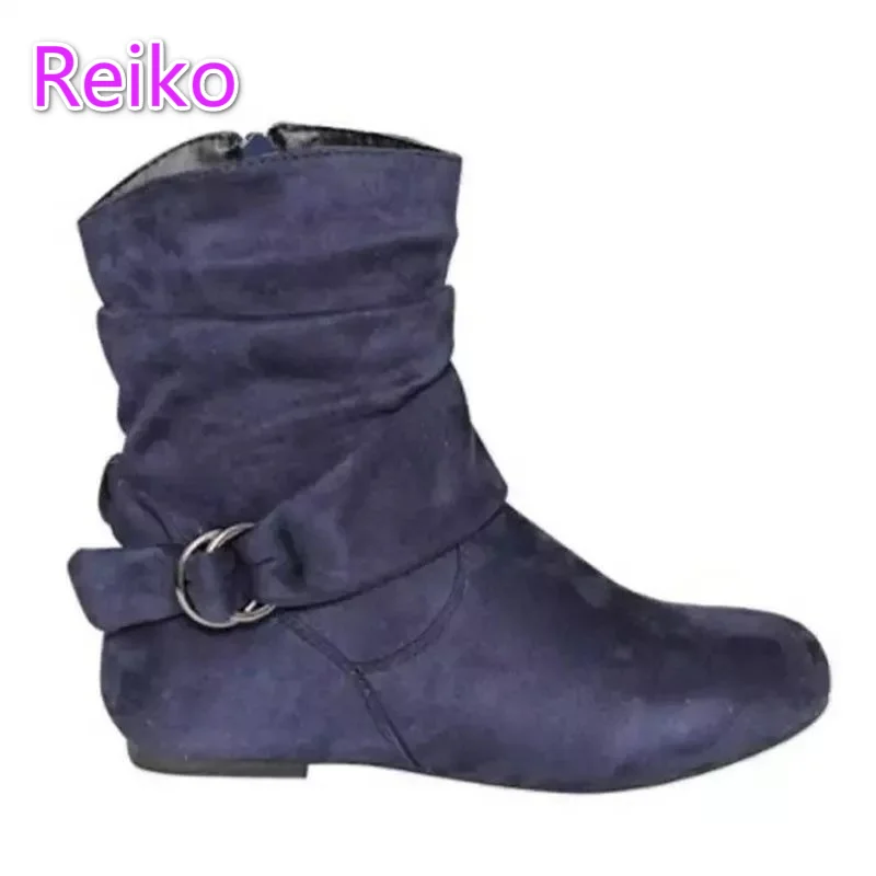 Женские ботинки на плоской подошве, черные или синие ботинки мартинсы с пряжкой и ремешком, большой размер 41-43, для весны и осени, 2021