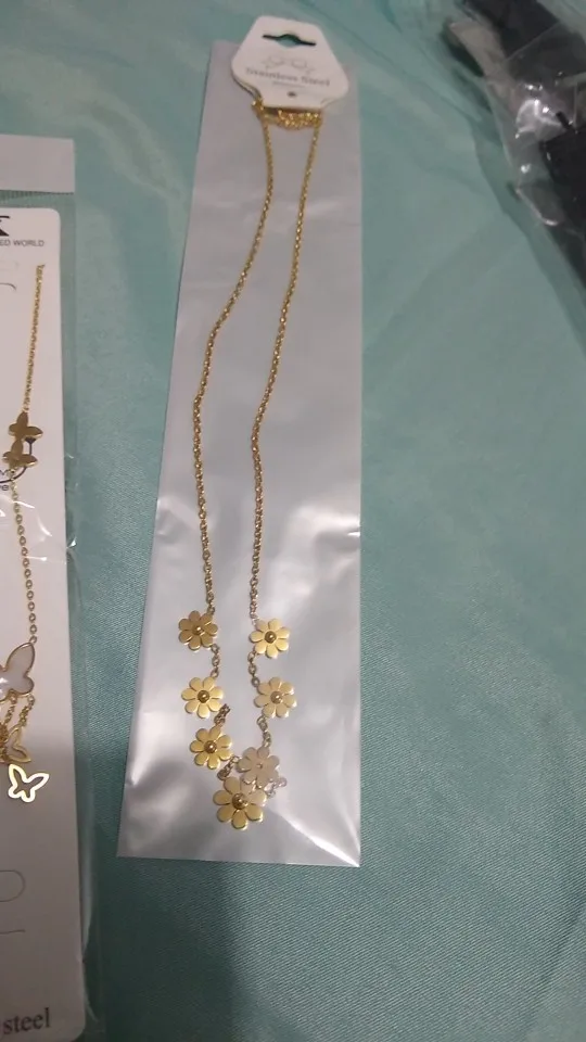 Длина ожерелья в порядке. Не слишком длинный .. И не слишком короткий... И золотой цвет не слишком Блестящий .. Нравится дизайн. Продавцу можно доверять!