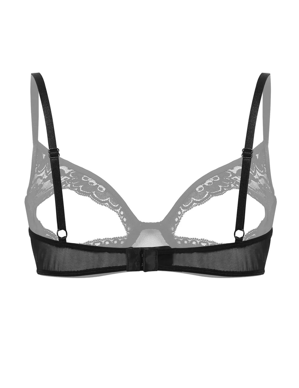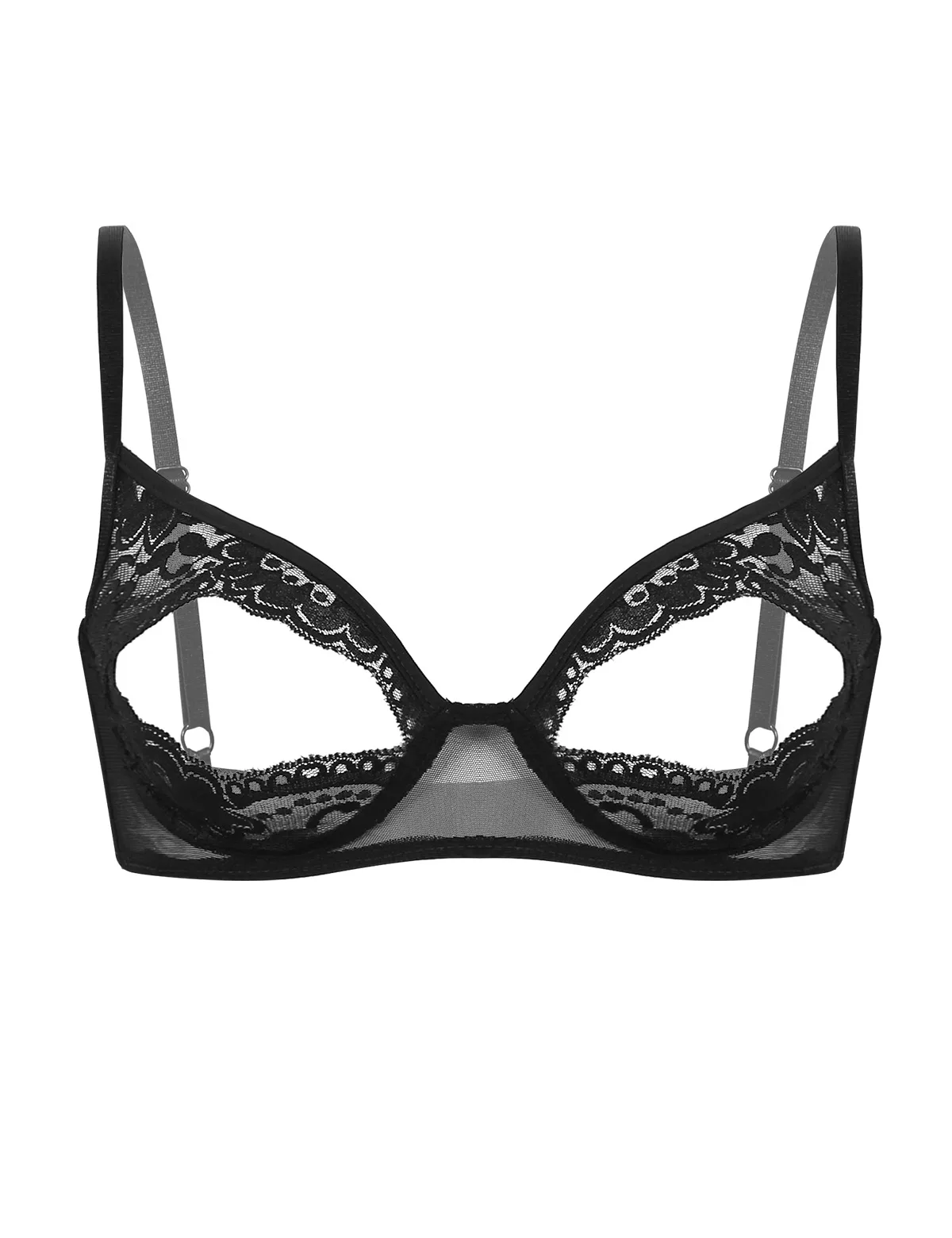 Женский укороченный бюстгальтер с открытой чашкой, цветочный кружевной прозрачный сексуальный бюстгальтер с разрезом для сосков, эластичное нижнее белье на бретелях