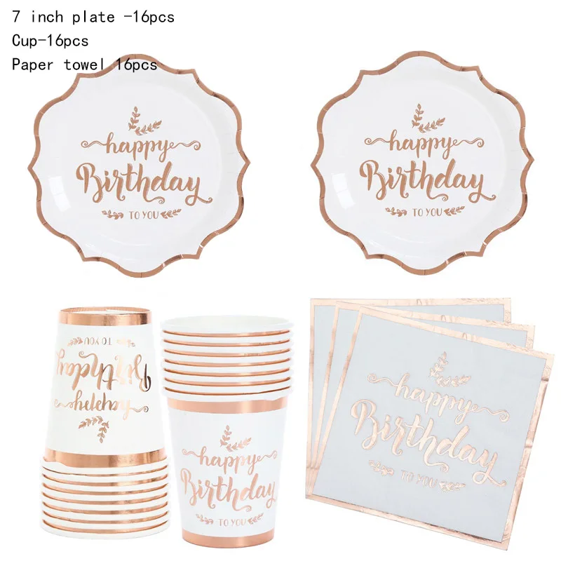 Одноразовая посуда из розового золота для украшения дня рождения, б...