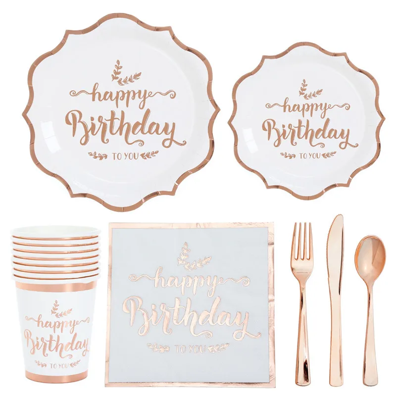 Товары для дня рождения, одноразовая посуда, розовое золото, тарелк...