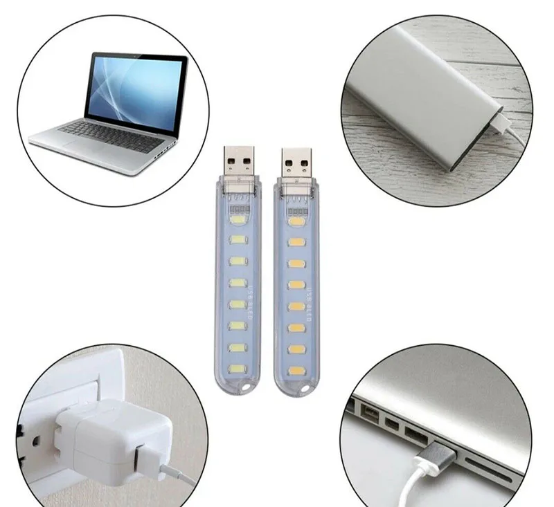 Настольная мини-лампа с USB, 5 В, 3 светодиода, 8 светодиодов