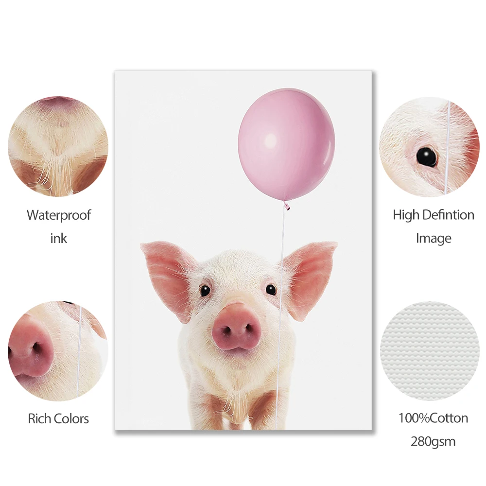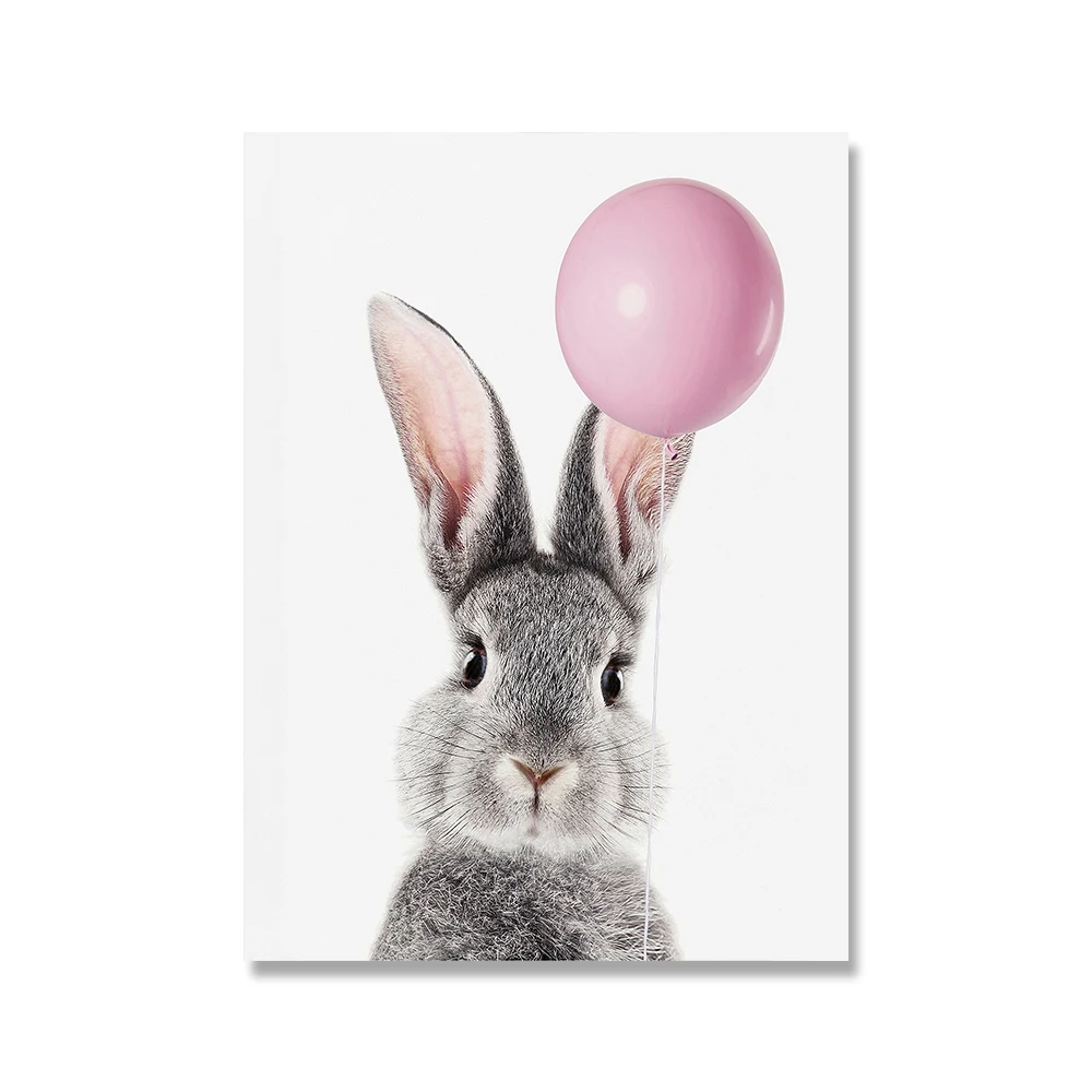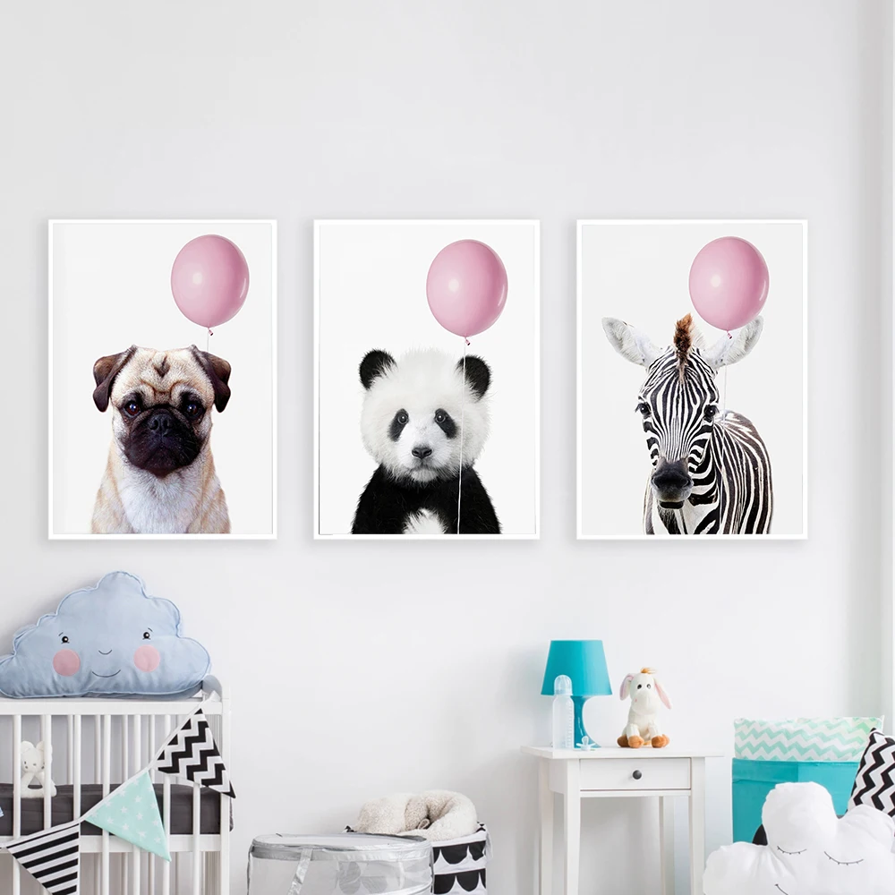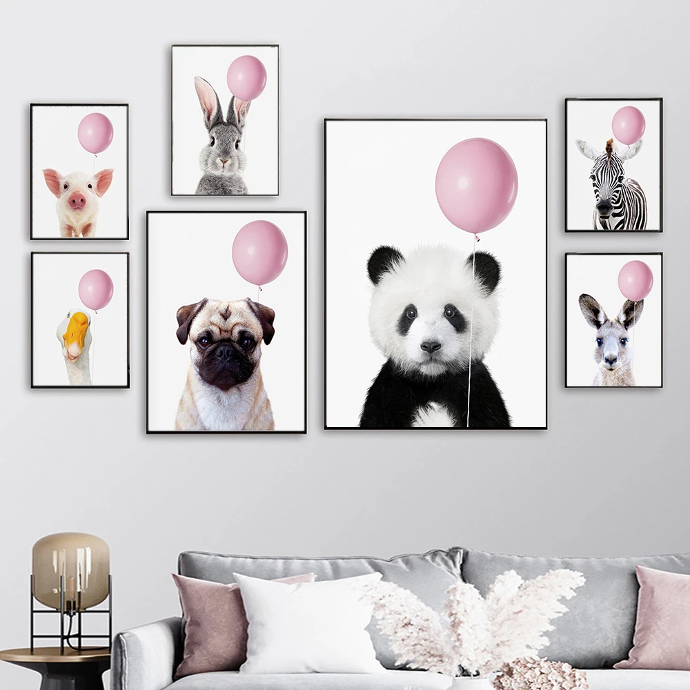 Розовый воздушный шар, кенгуру, панда, Зебра, свинка, щенок, постер с принтом животных, Настенная картина для детской комнаты, украшение детской комнаты в скандинавском стиле
