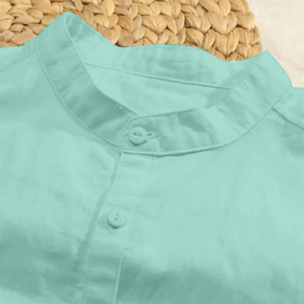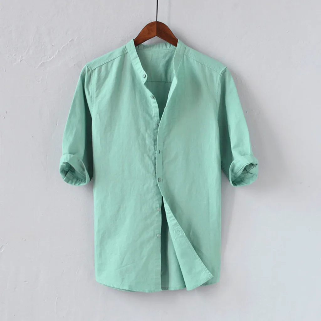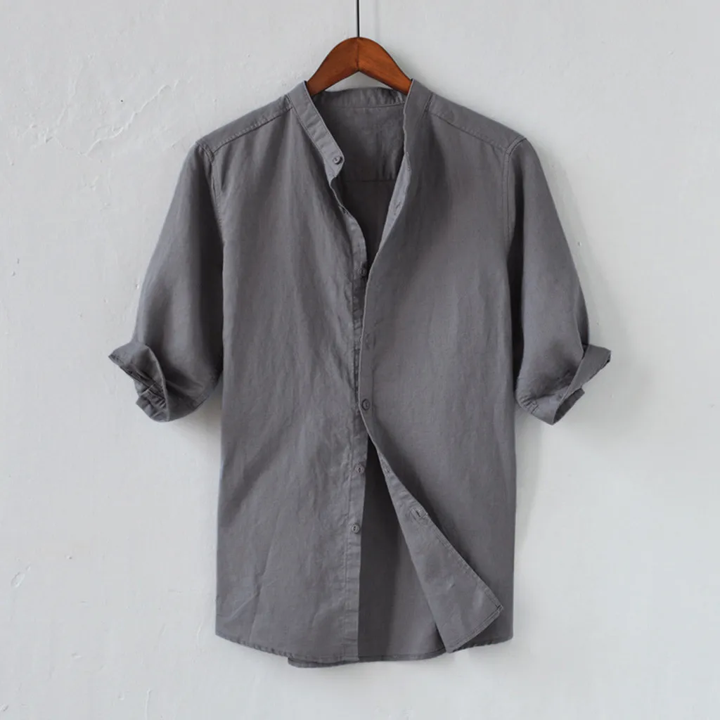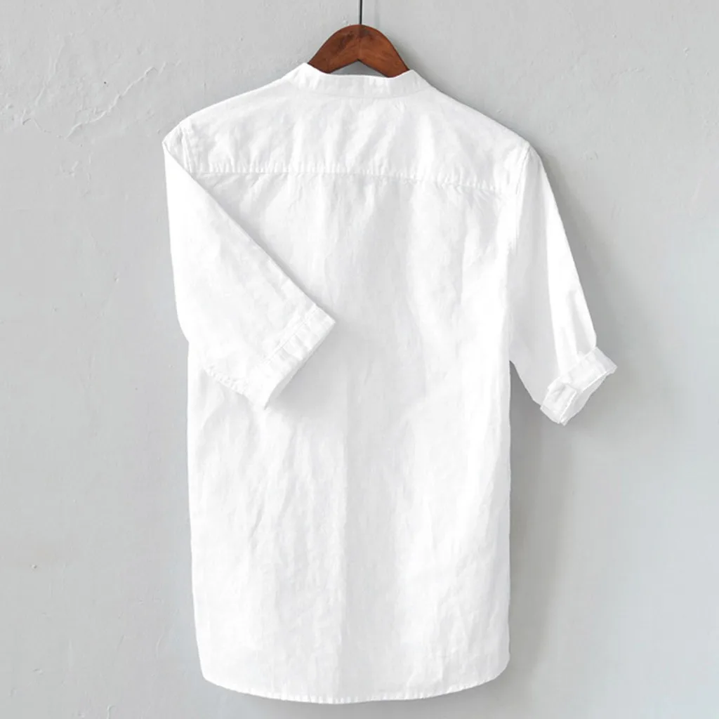 Рубашка мужская с рукавами-пятью, дышащая хлопковая сорочка, однотонная, на пуговицах, белая, лето