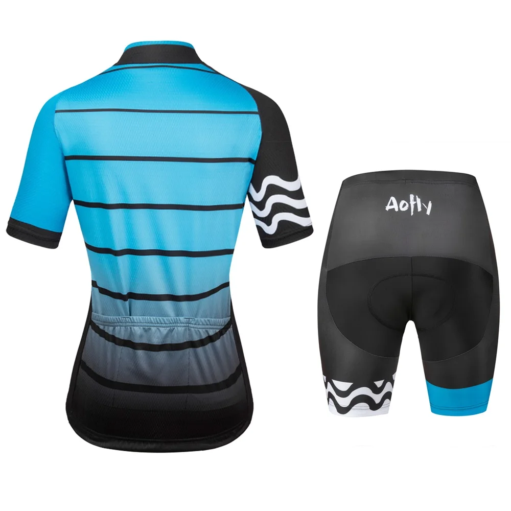 Женский летний комплект одежды для велоспорта 2021, голубая веломайка Aofly, короткие брюки из 20D гелевого материала для горного велосипеда, профессиональная командная футболка