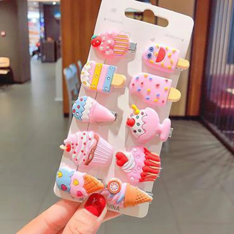 10 шт.компл. новые милые зажимы для волос с мультяшным мороженым ед...